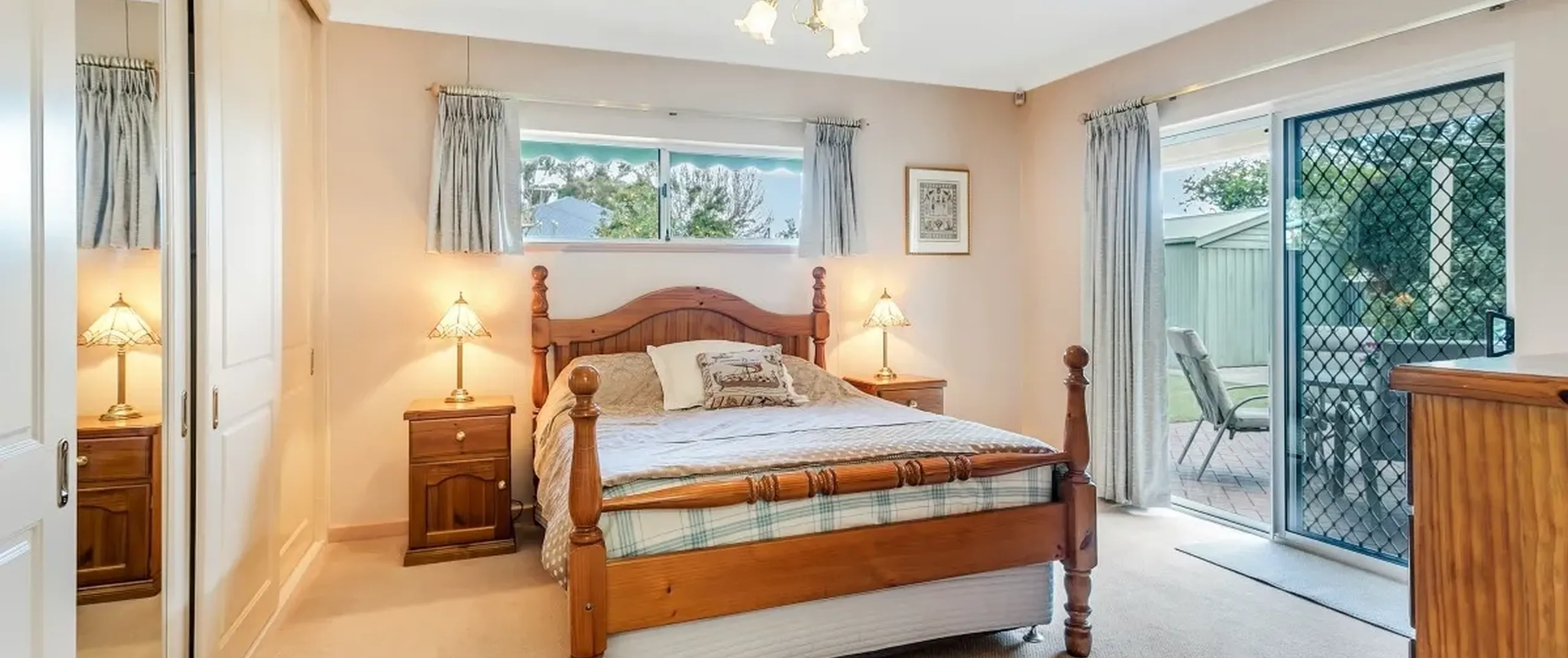 - Master bedroom with built-in robe, ensuite and garden views