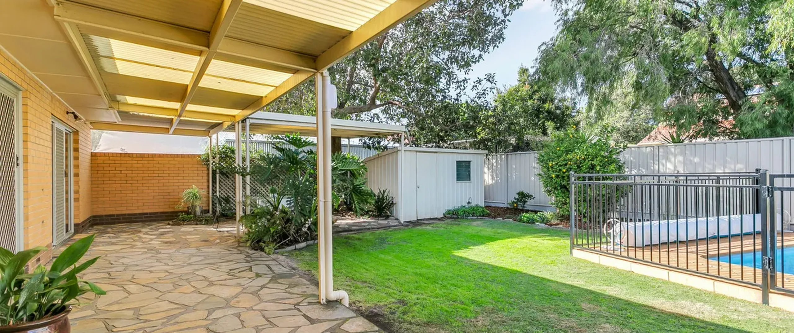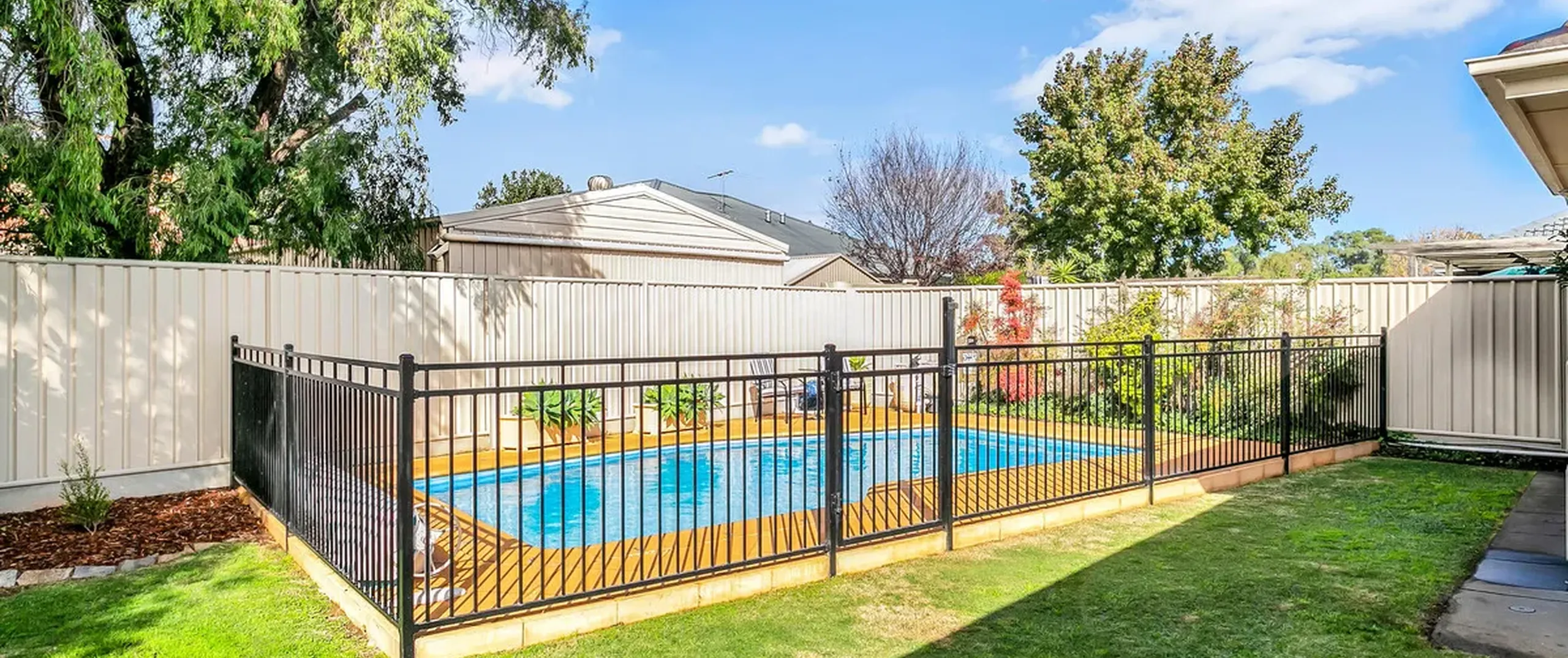 - Fully fenced, secure rear yard with powered garden shed and rainwater tank plumbed to toilet