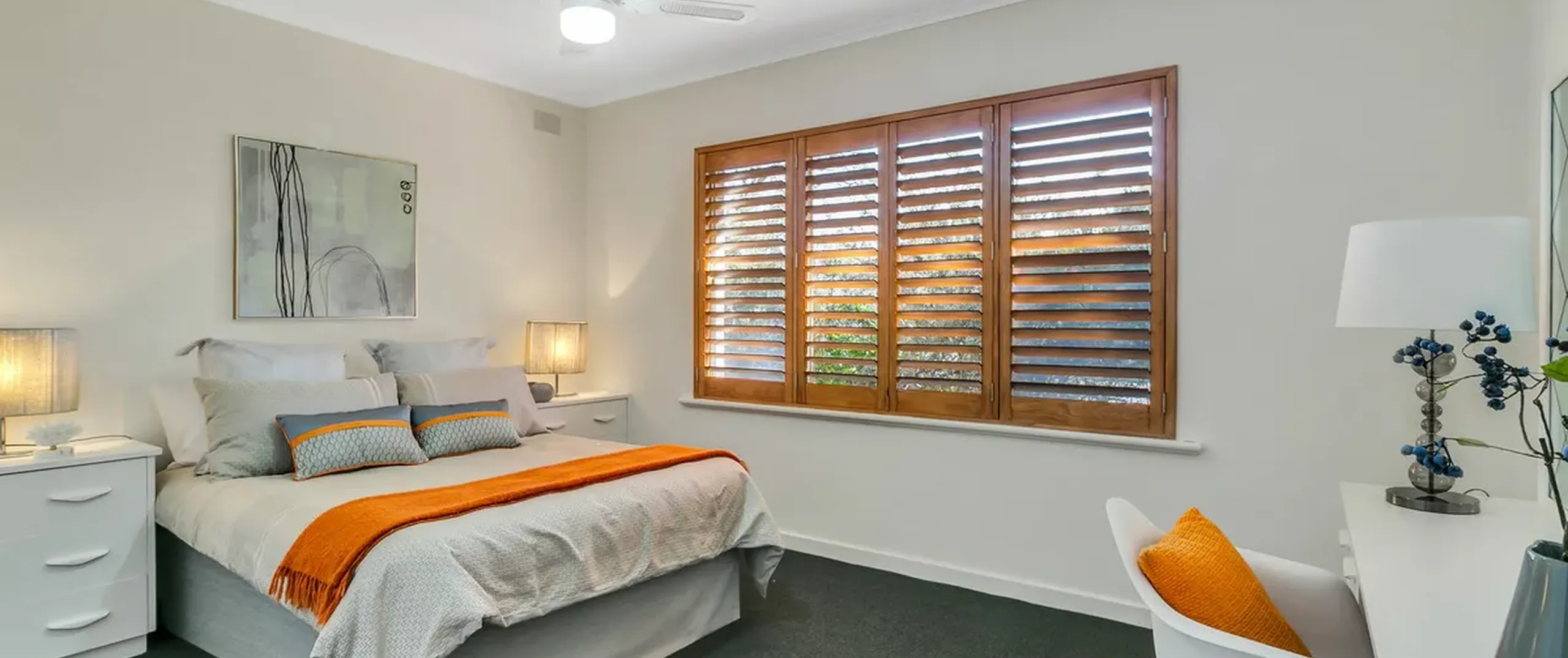 - Large master bedroom with ceiling fan, built-in robe and built-in dresser