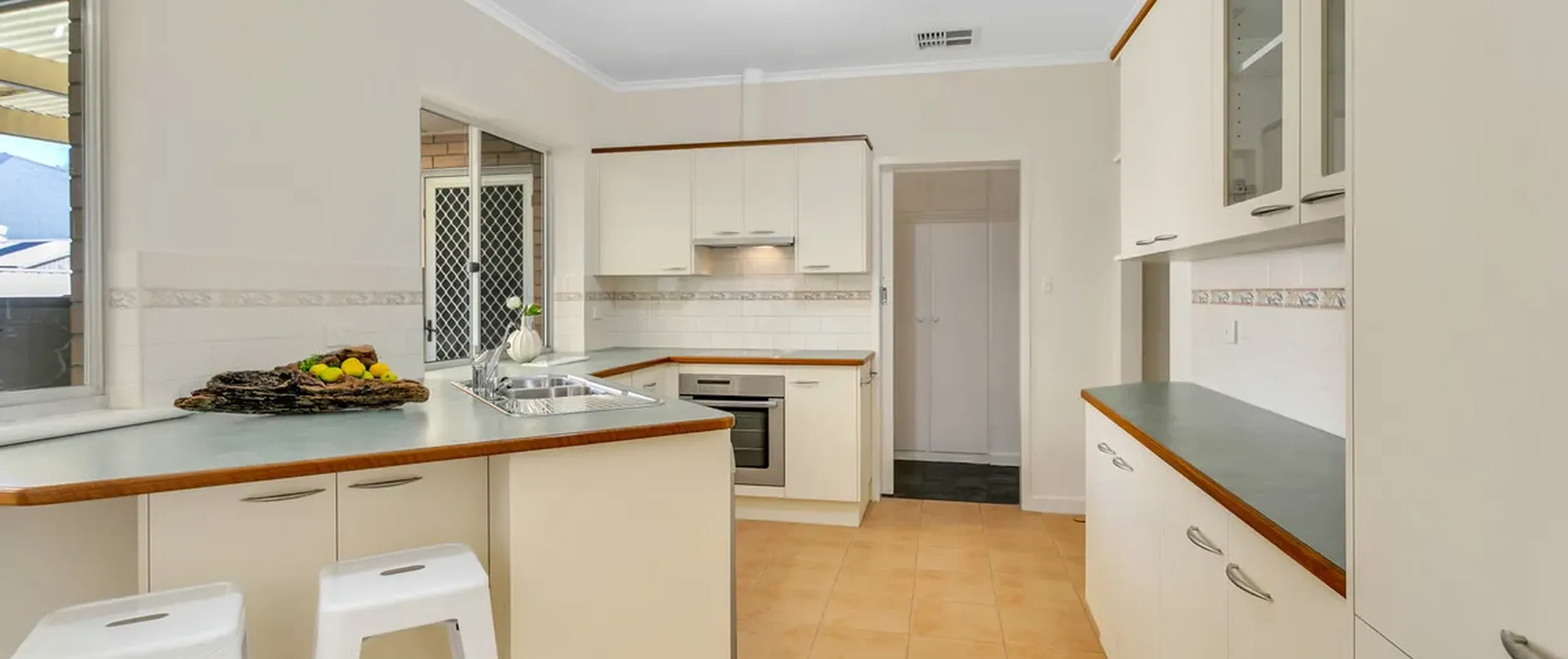 - Practical kitchen with ample bench and cupboard space, dishwasher, breakfast bar and provision for walk-in pantry