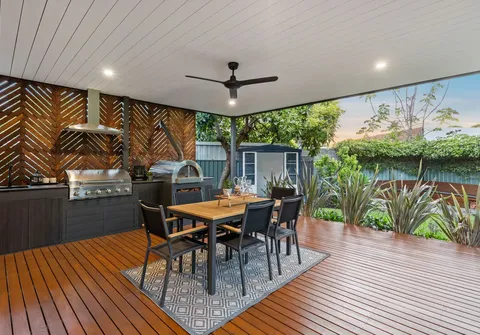 After walking down the elegant cobble-stone path, you will feel right at home when stepping through the entrance and hallway, complimented perfectly by a large light filled lounge room. Be blown away as you step into the jaw dropping, recently renovated rear open plan dining and kitchen area, which flows seamlessly through the sliding glass doors to the spectacular rear garden with an impressive decked entertaining area boasting an outdoor kitchen with granite benchtops, integrated BBQ, rangehood and wood-fired pizza oven. Relax after a days work, or enjoy the company of family and friends with the separate sunken fire pit area with built-in seating, nestled in a beautifully landscaped backyard. Adding to this lifestyle home are the raised herb and vegetable garden beds and mature fruit trees that can be enjoyed all year round.