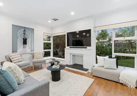 Effortlessly combining elegant charm with sleek modern day style, the transformation blends and retains original character features such as solid timber floorboards, high ceilings, large fireplace and a stunning stone frontage. A thoughtfully designed floor-plan has been created with today’s family lifestyle and entertaining in mind. Boasting three well-sized bedrooms, one of which is the private master suite overlooking the landscaped front garden.