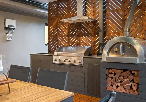 - Impressive decked undercover outdoor entertaining area boasting an outdoor kitchen with an integrated BBQ, rangehood, hot/cold water and large pizza oven, providing the perfect space to host family and friends