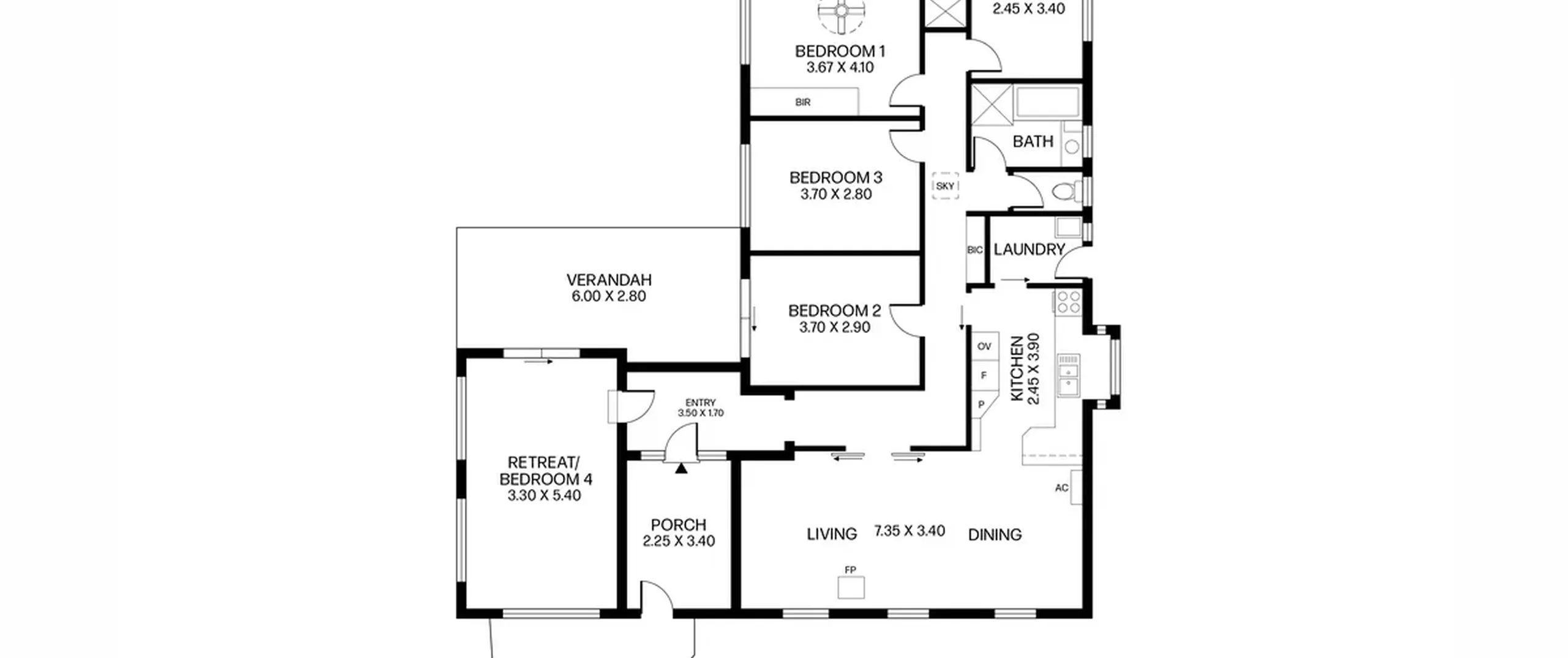- Light filled open plan living, dining and kitchen with fireplace and air conditioner