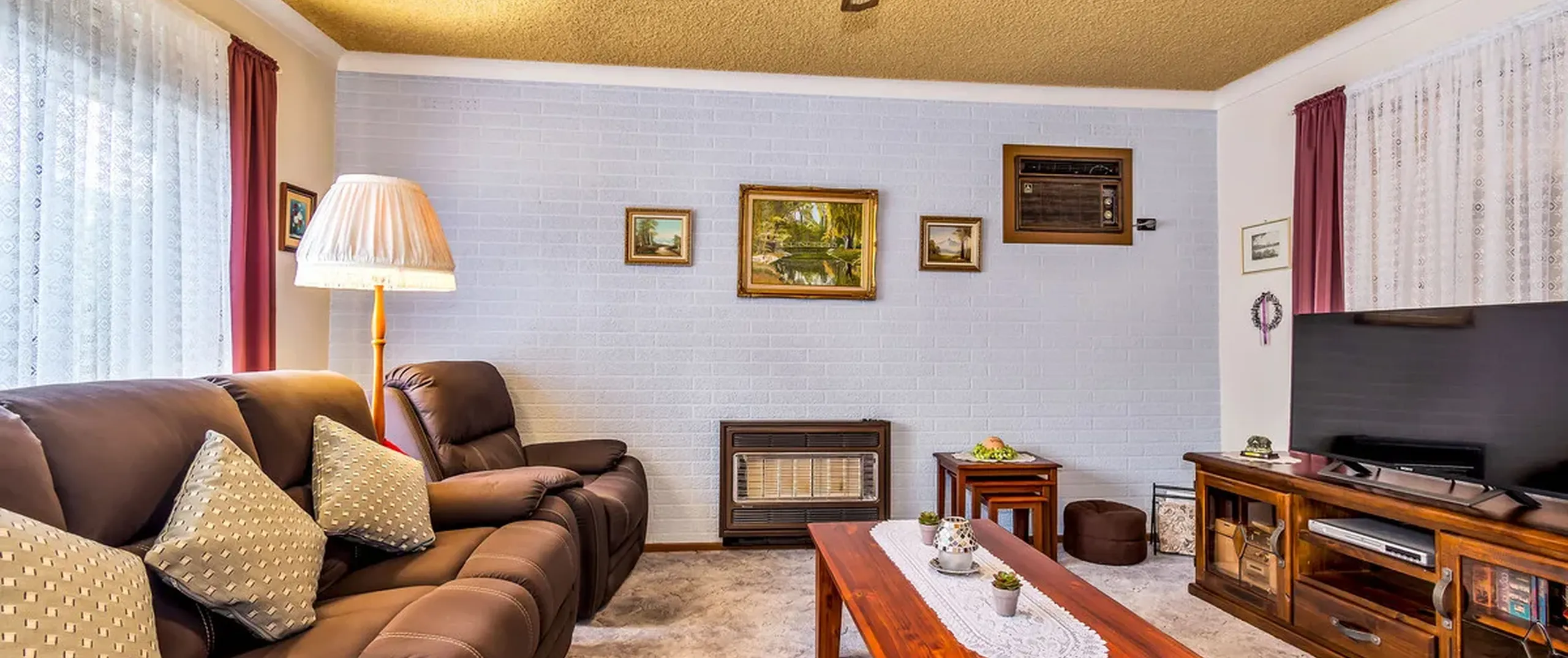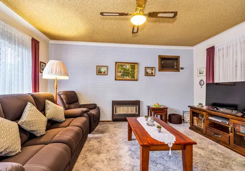 - Light filled lounge with ceiling fan, gas heater and air conditioning
