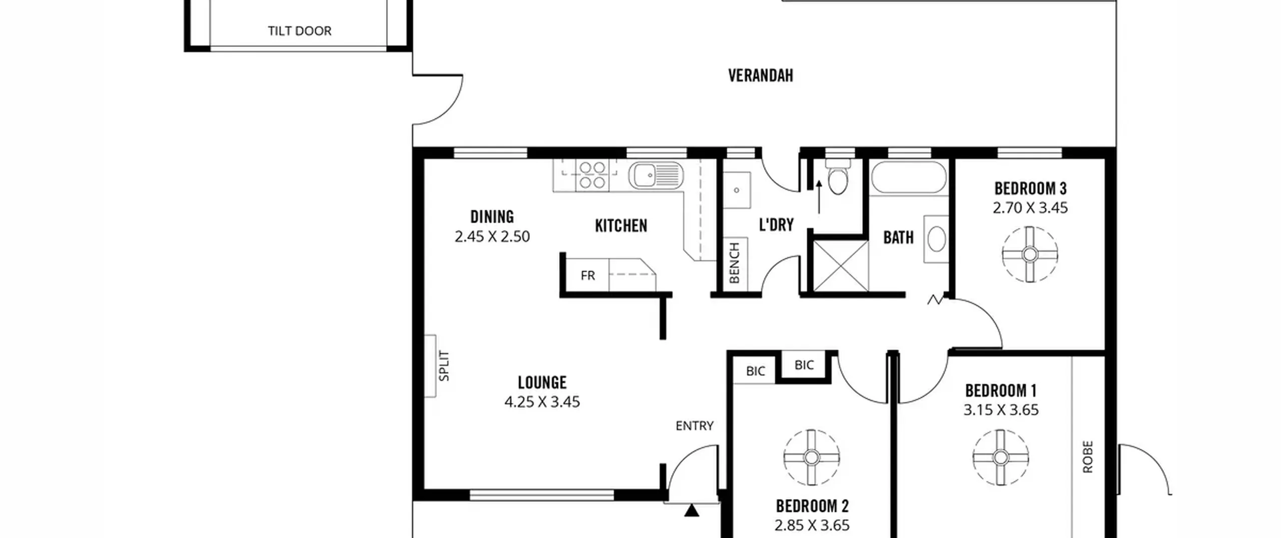 - 3 good sized bedrooms, all complete with ceiling fans, bedroom 1 with built-in robe