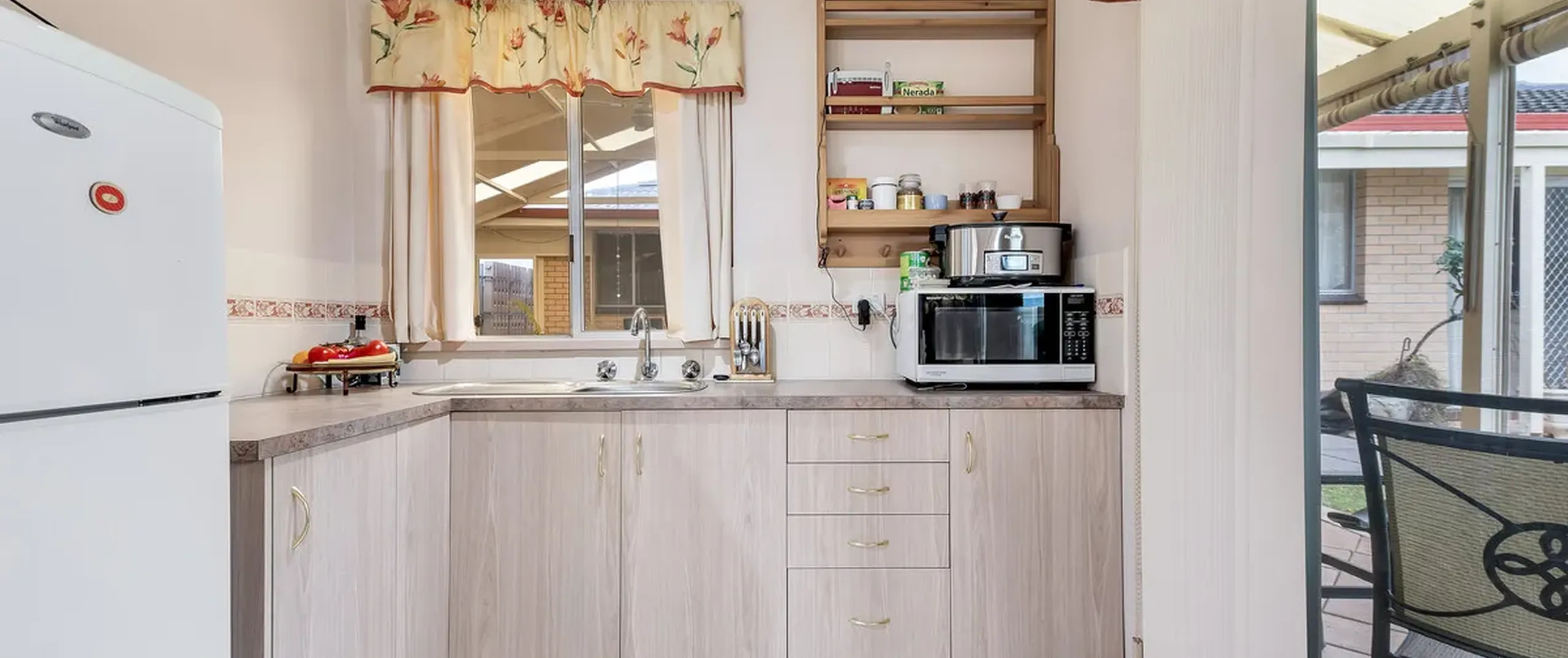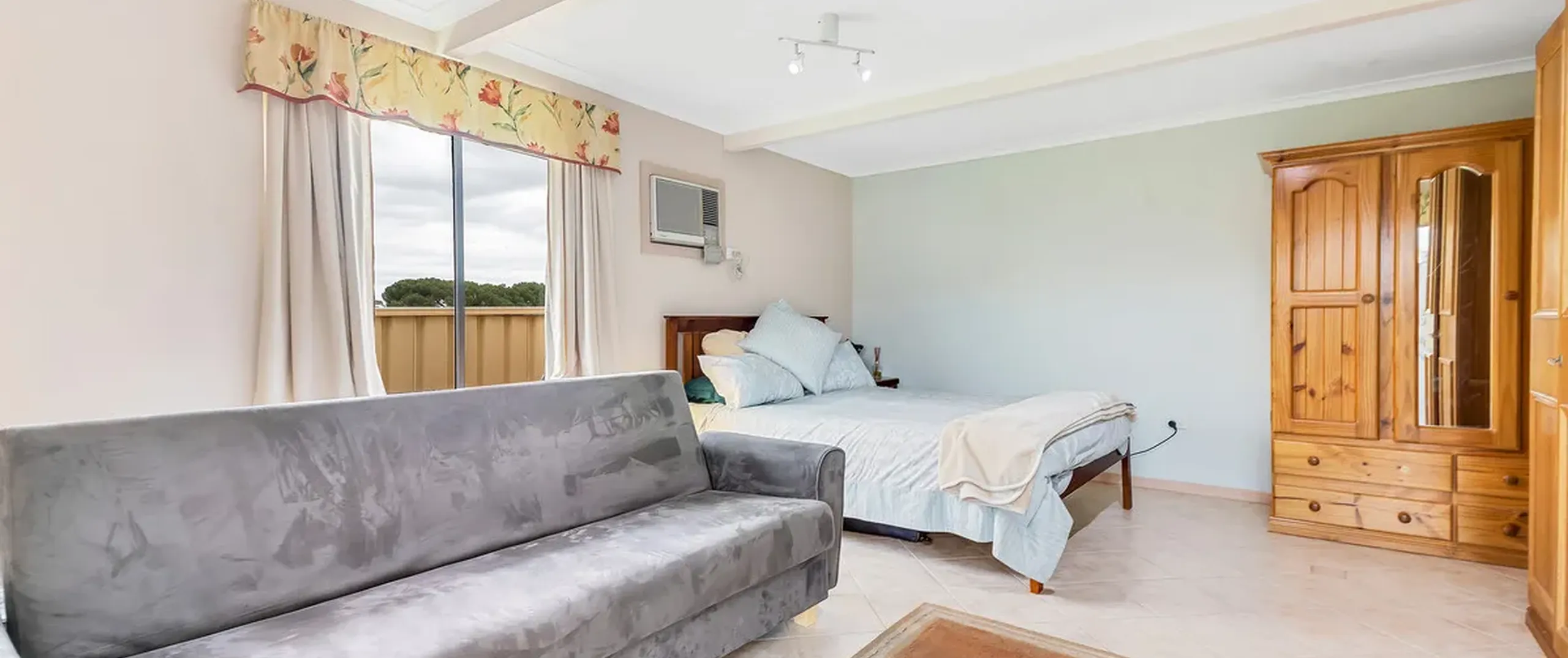 - Enclosed outdoor self-contained living area with kitchen, ensuite and air conditioner