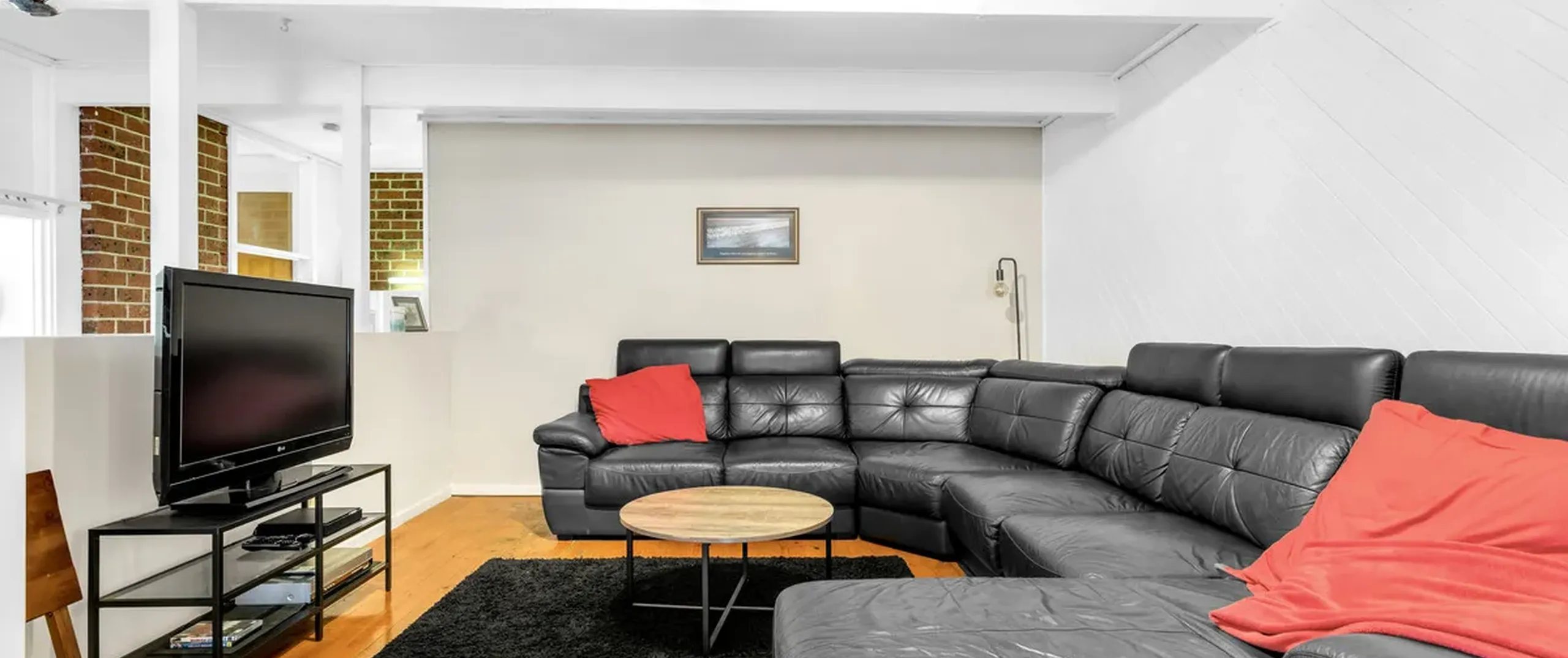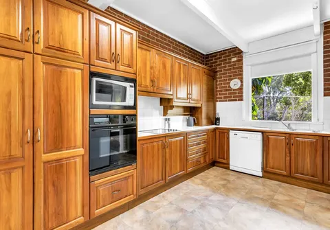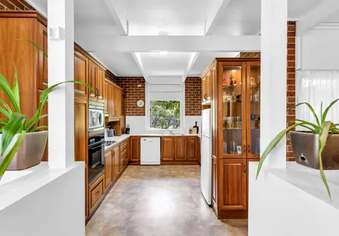 - Charming kitchen with exposed brick, plus dishwasher and ample cupboard space