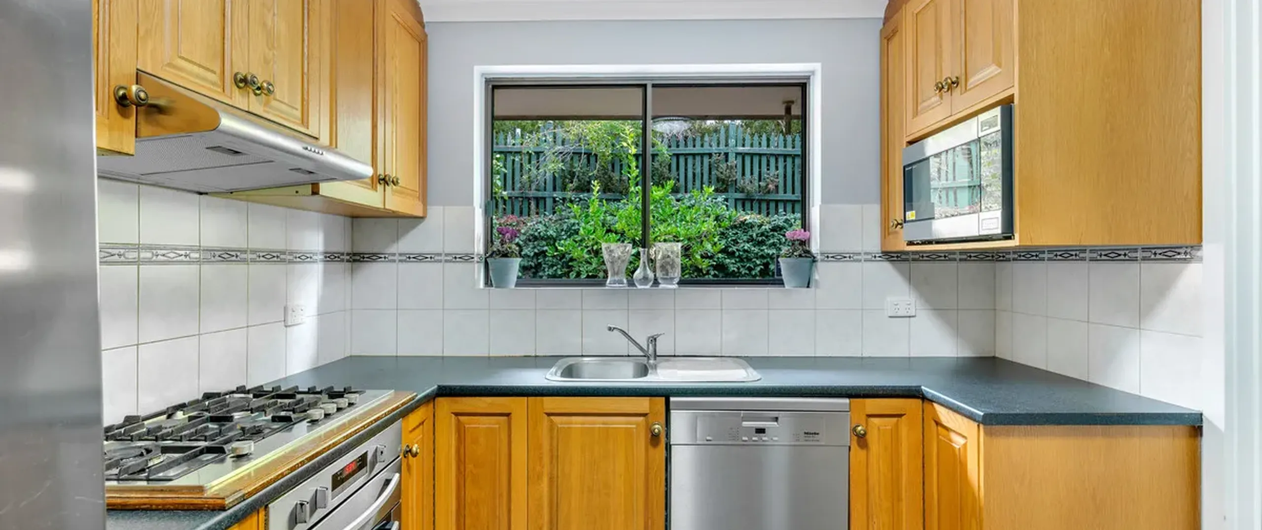 - Spacious kitchen with plenty of storage, stand-alone oven and Miele dishwasher