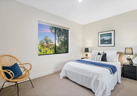 With an entry level that offers a warm and ideal space for the family to gather in a spectacular and open plan kitchen complete with a gas stove top and stainless-steel appliances, dining and living area with open access to an enclosed and peaceful balcony where you can entertain or enjoy a good book and the view for hours. As well as two generously sized bedrooms, the master complete with a dreamy walk-in robe and ensuite + sliding doors out to the breezy balcony. The second bedroom is complete with a built-in robe and serviced by one of three bathrooms throughout the home. A double car garage completes the level.