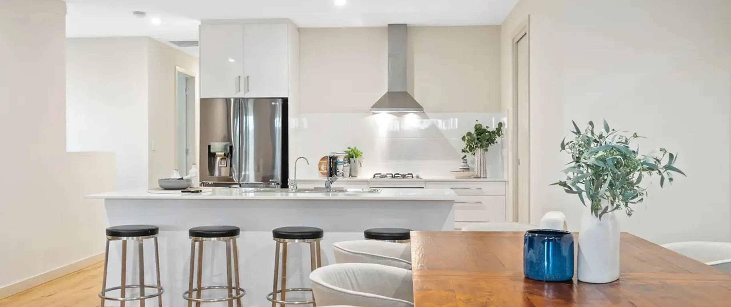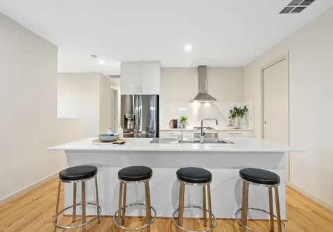 - Expansive open-plan kitchen, dining and living, boasting beautiful laminated black-butt timber flooring and sliding door access to the balcony