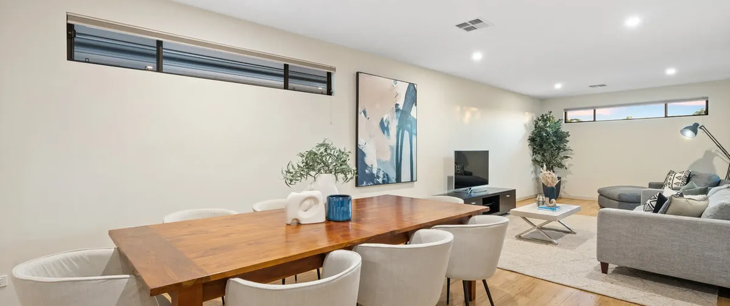 - Open plan dining adjacent kitchen with sliding doors to the outdoor entertaining