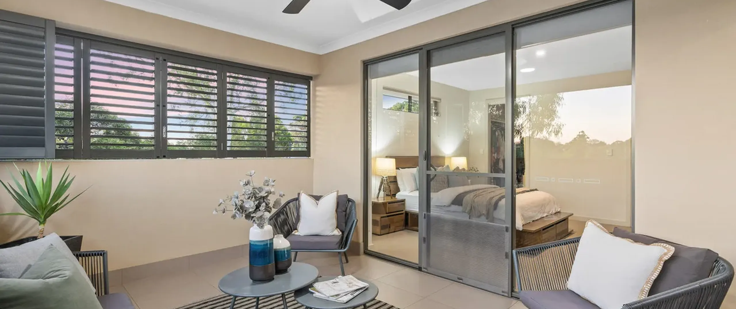 - Spacious enclosed balcony with ceiling fan, bi-fold plantation shutters and jaw dropping views of the hills