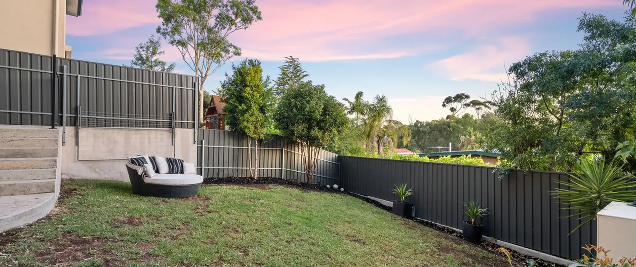 - Private backyard with low maintenance gardens for kids and pets to run free