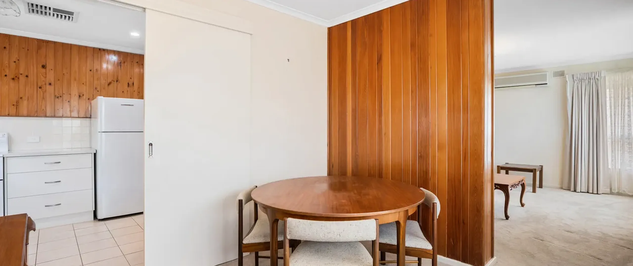 Charming original features, such as timber wall paneling, add a traditional touch and could be further updated to add your own style and flair. The spacious lounge offers split system air conditioner and flows seamlessly to the meals area that adjoins the practical kitchen.