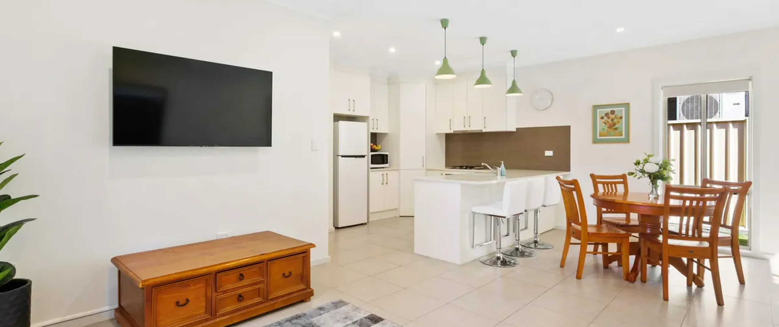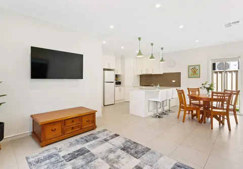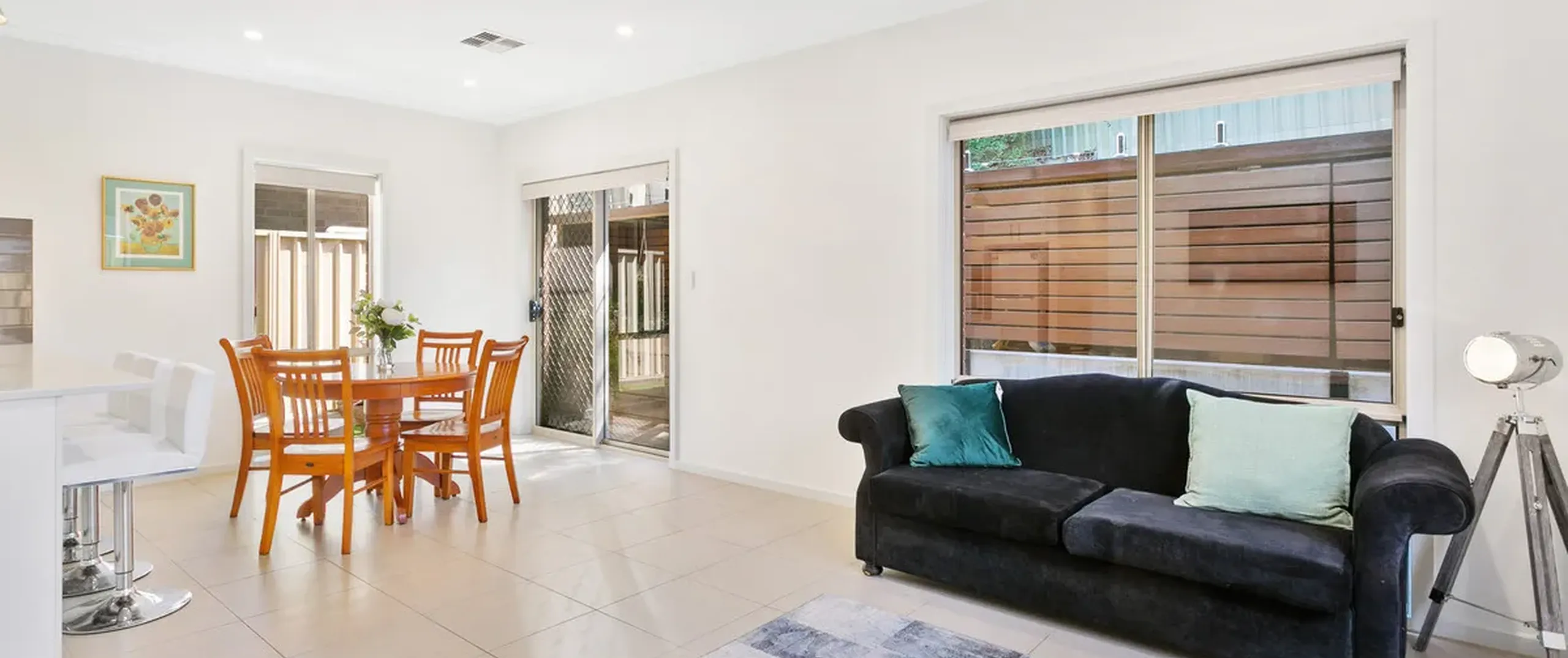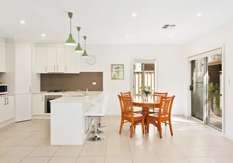 - Spacious open-plan dining, lounge and kitchen area with easy-care tiled flooring and sliding door opening to the backyard