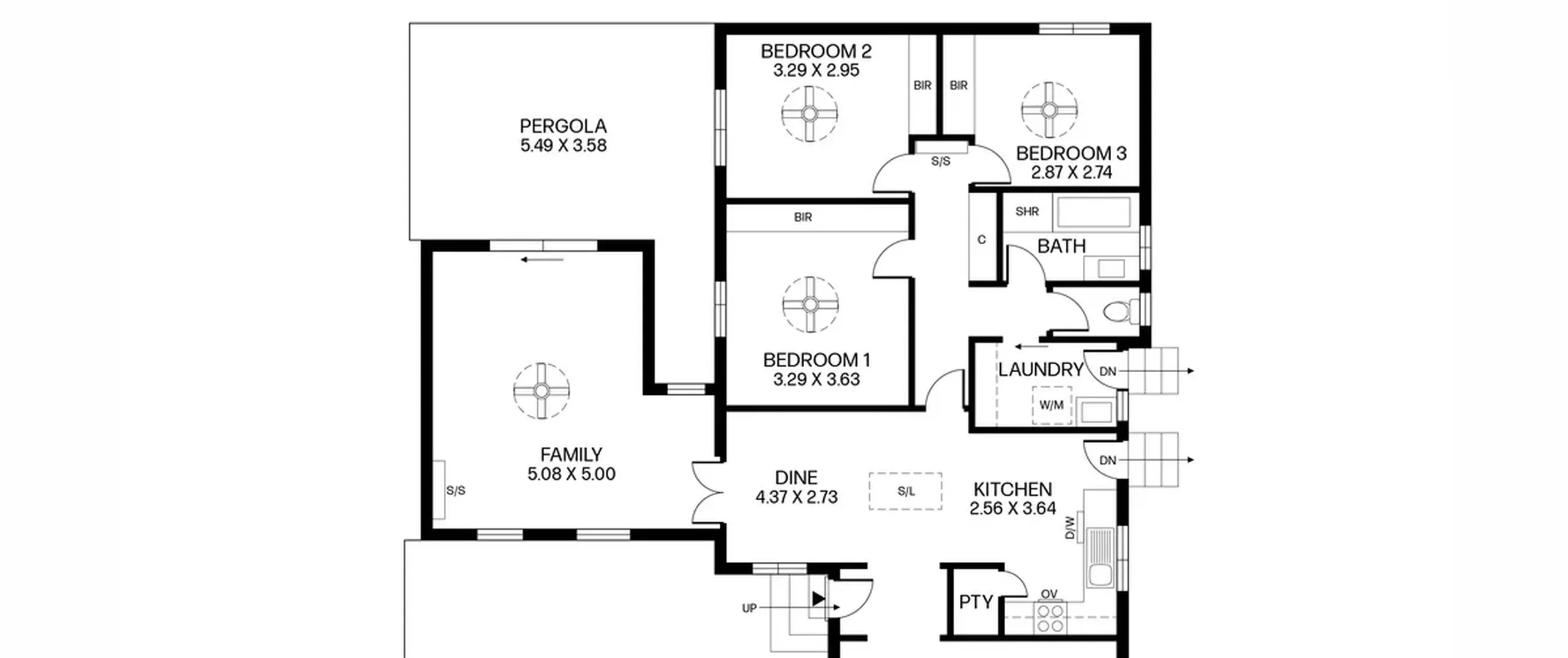- Three bedrooms with ceiling fans and built-in wardrobes