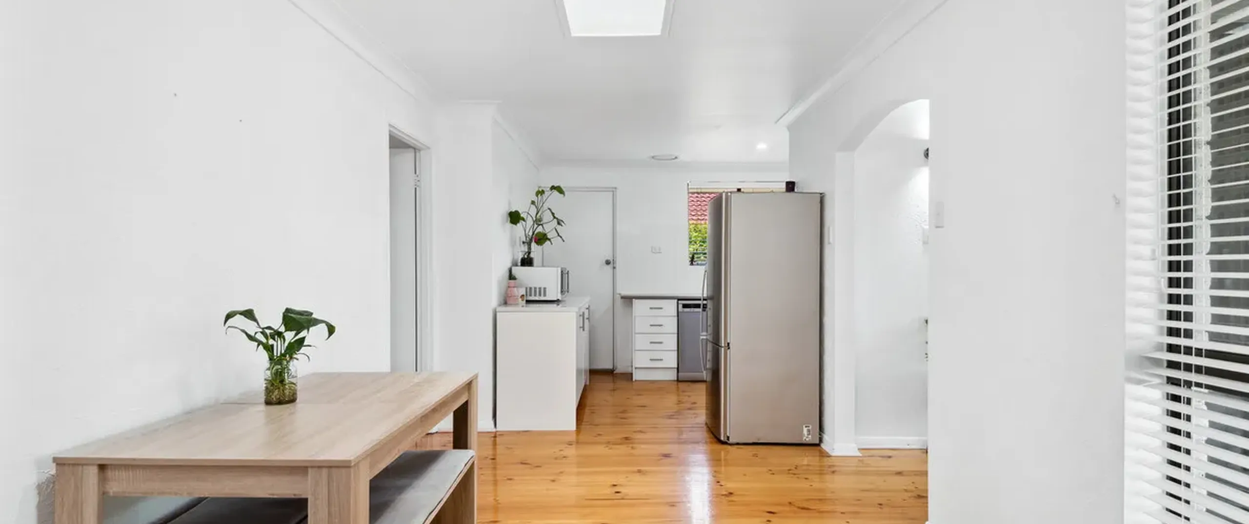 - Open dining and kitchen beautifully complimented with natural light from sky-light