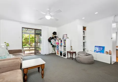 - Family room with ceiling fan and split system air-conditioning