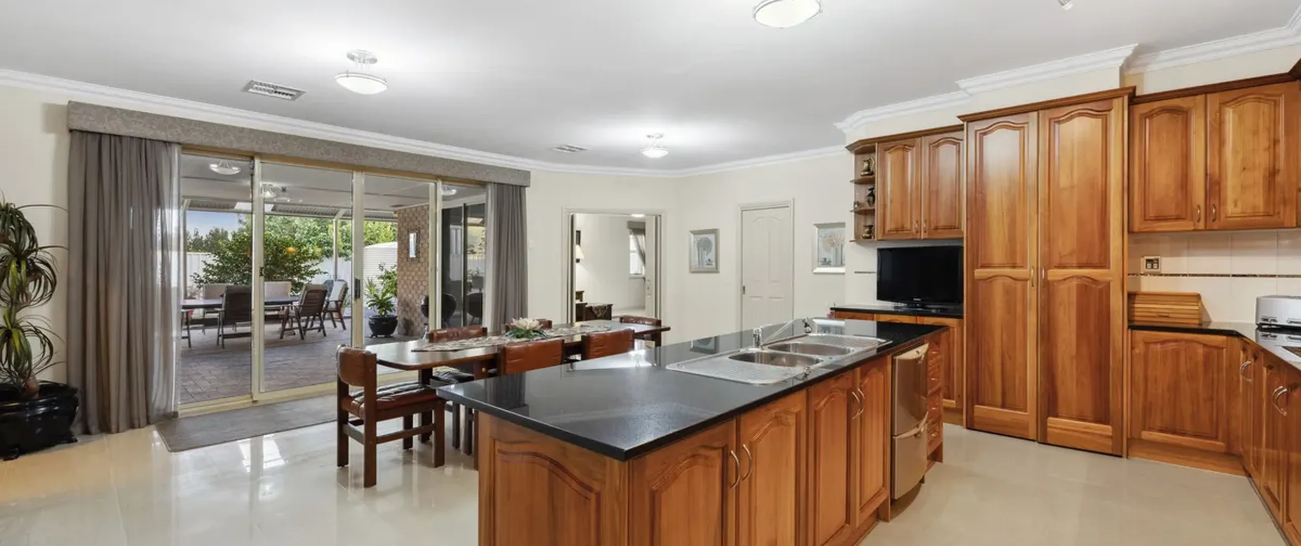- Blackwood timber kitchen showcasing granite benchtops, island bench, breakfast bar