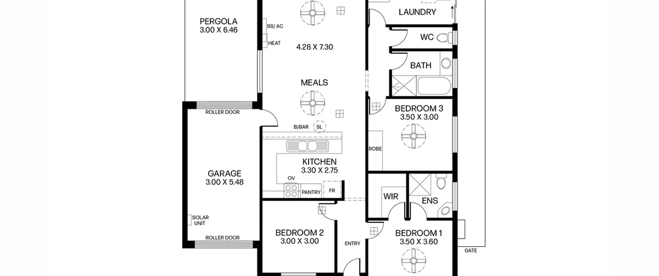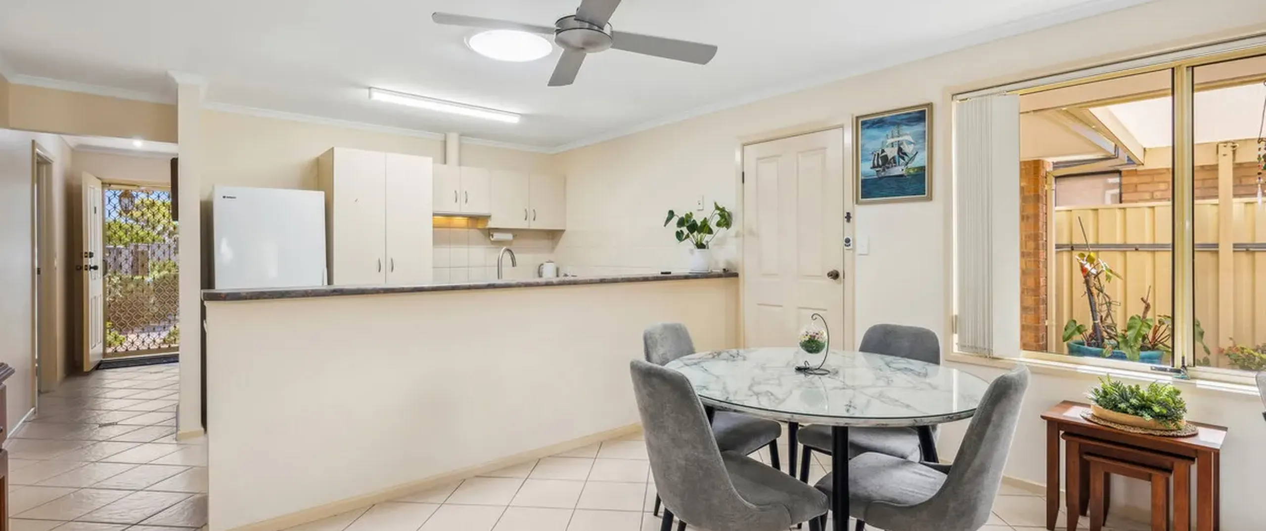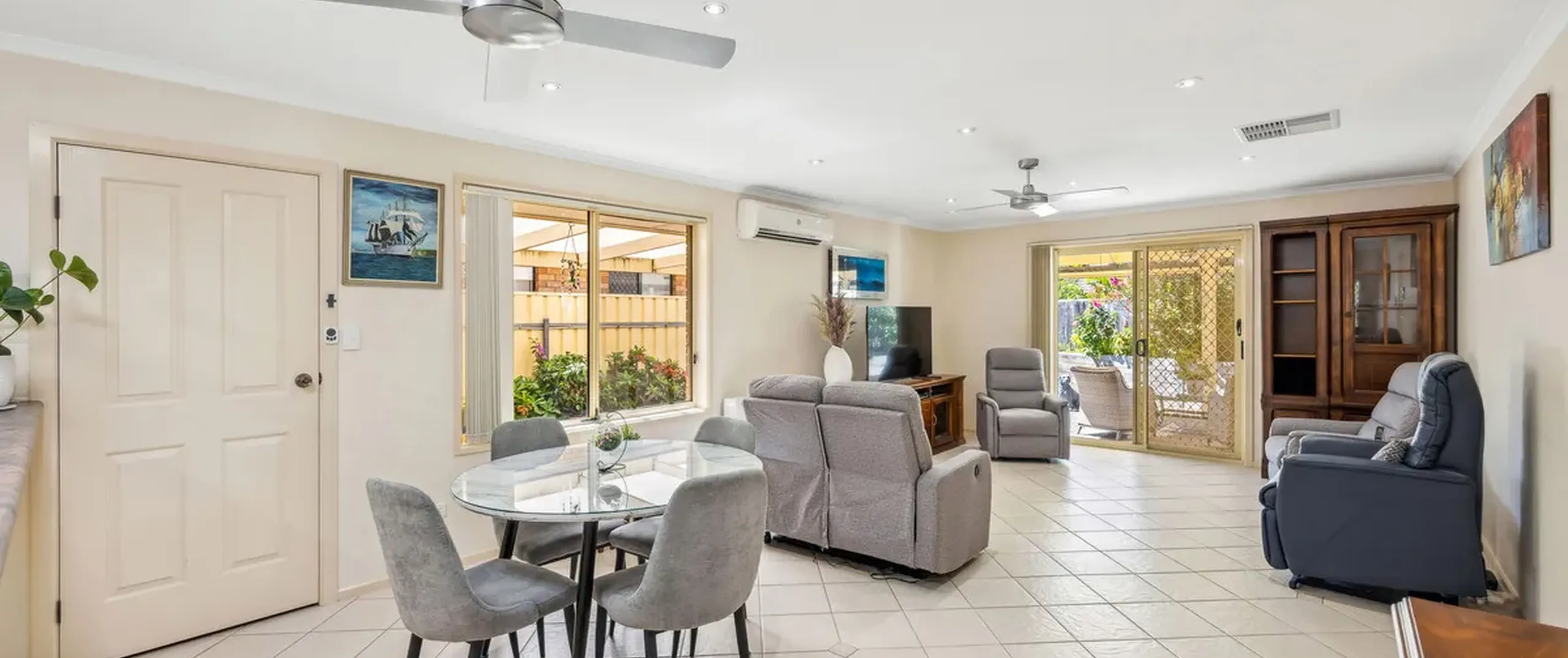 - Open plan living with ceiling fans, split system air-conditioning and gas heater