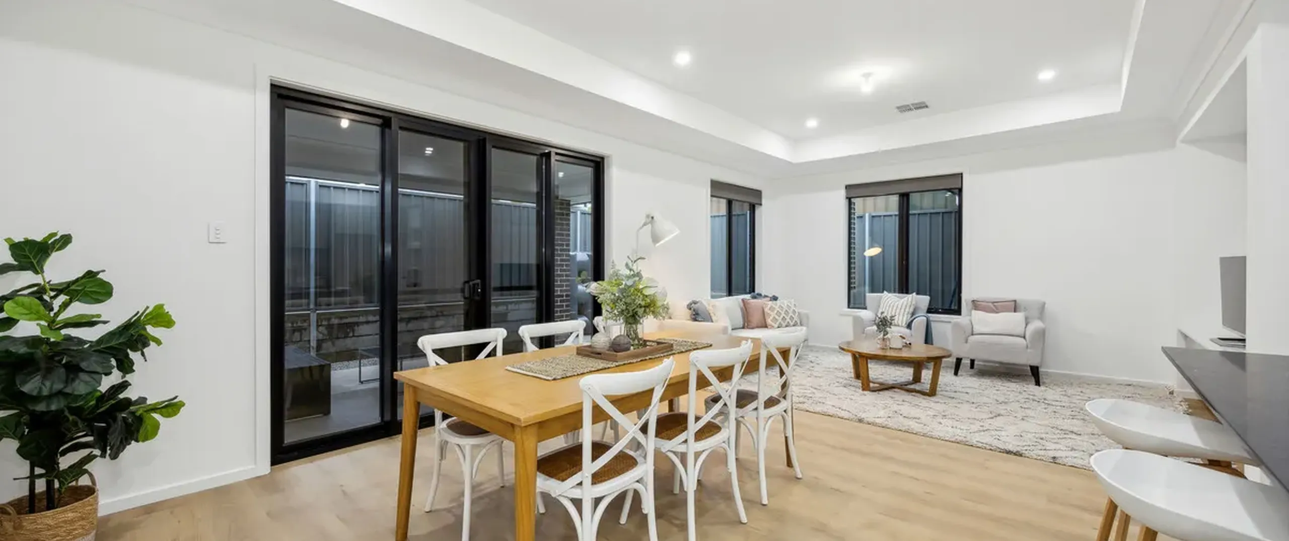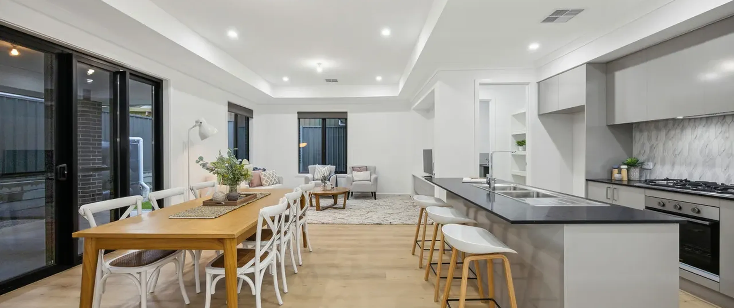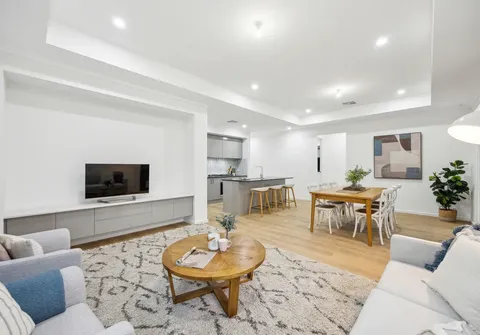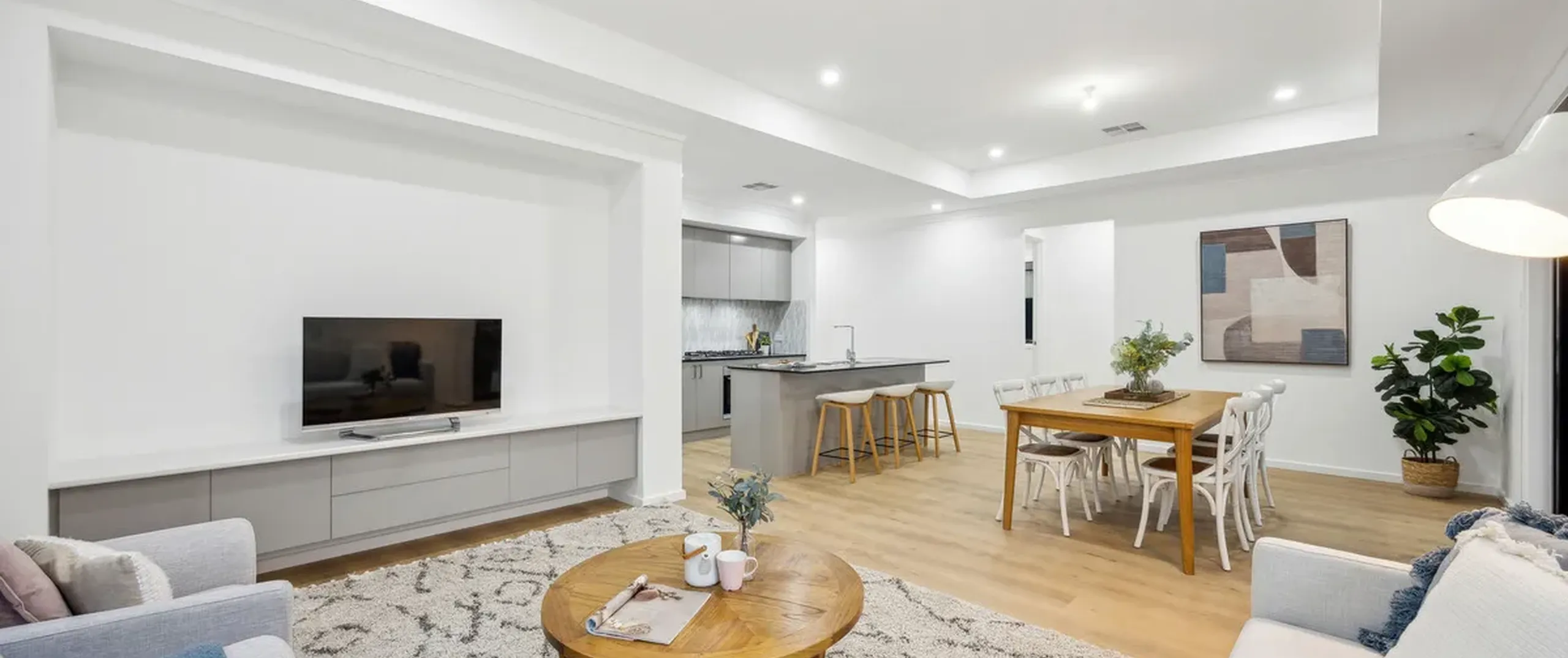 - Spacious open plan living, dining and kitchen area with 3-meter coffered ceiling in living, LED downlights, built in TV unit and sliding door that leads to the outdoor alfresco