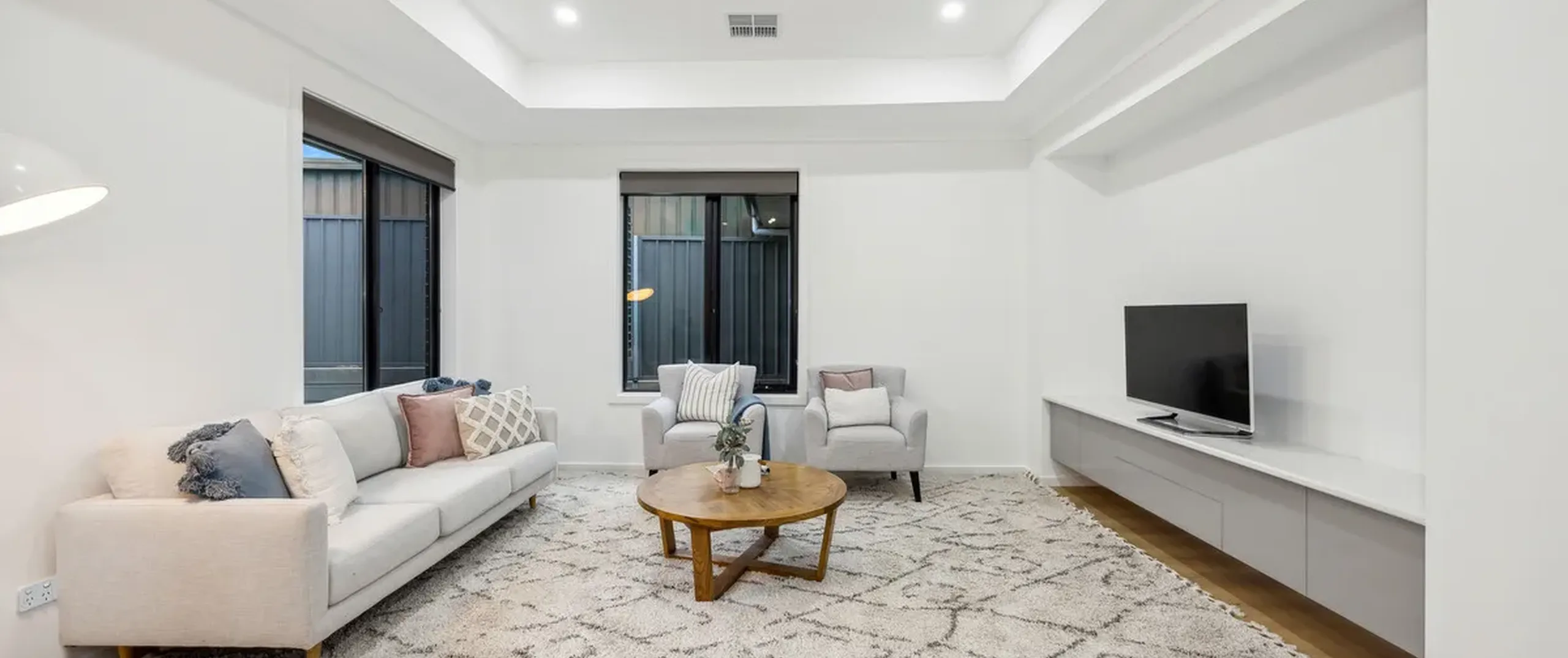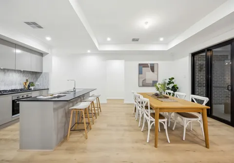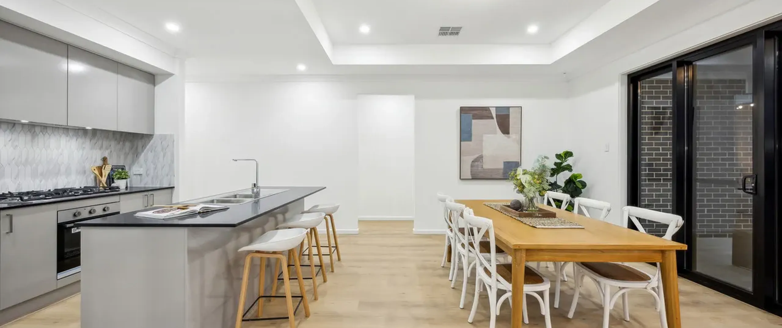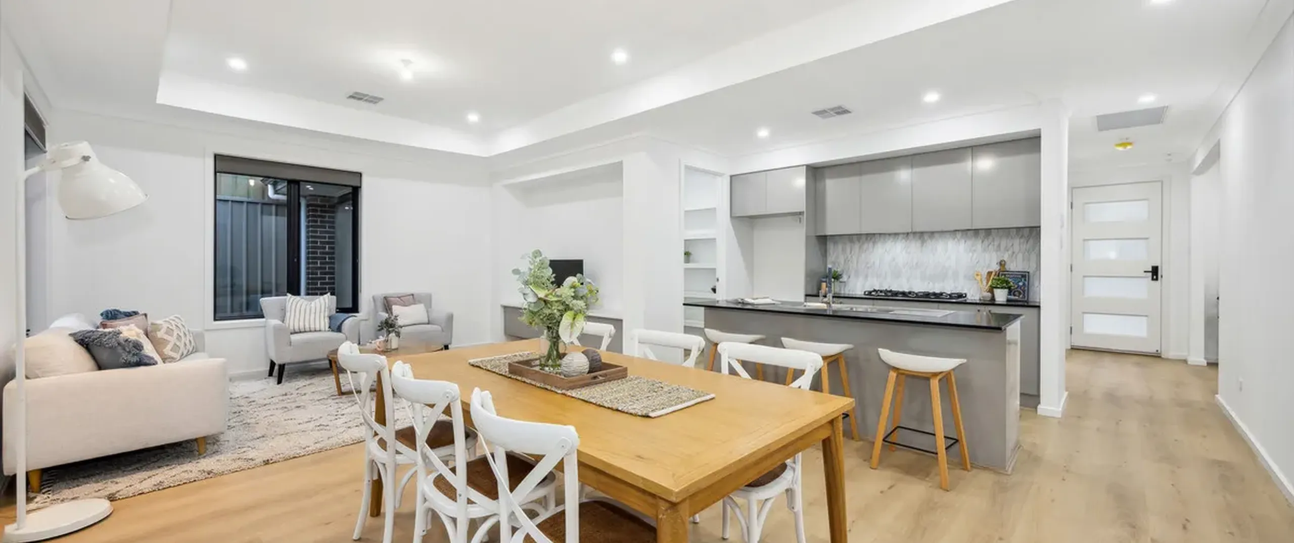 - Spacious open plan living, dining and kitchen area with 3-meter coffered ceiling in living, LED downlights, built in TV unit and sliding door that leads to the outdoor alfresco