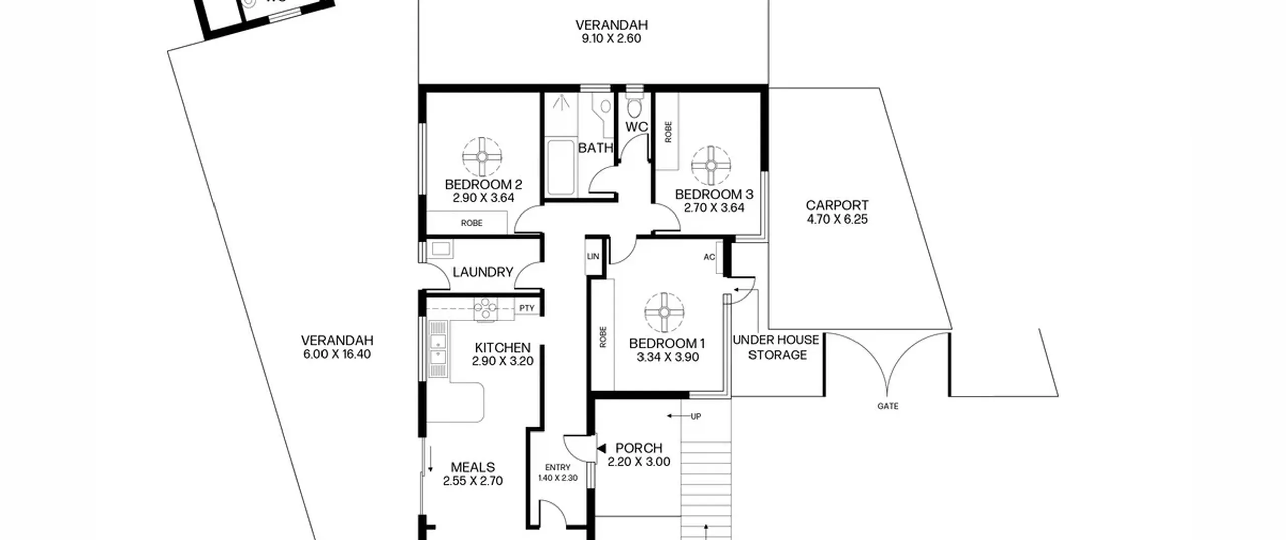 - Generous sized second and third bedrooms with built-in robes and ceiling fans