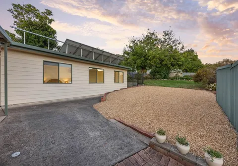 The functional and comfortable layout features a well-appointed kitchen, meals and lounge area that serves as the heart of the home, showcasing stunning hillside views. All three bedrooms are generously sized and have easy access to a well-equipped main bathroom. Additional conveniences include a separate toilet, laundry with external access, and ample off-street parking for multiple vehicles.