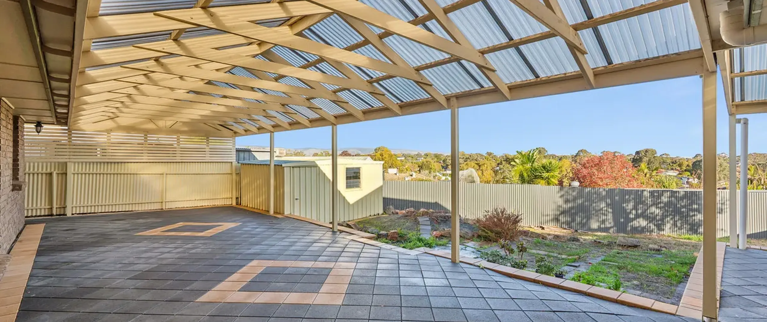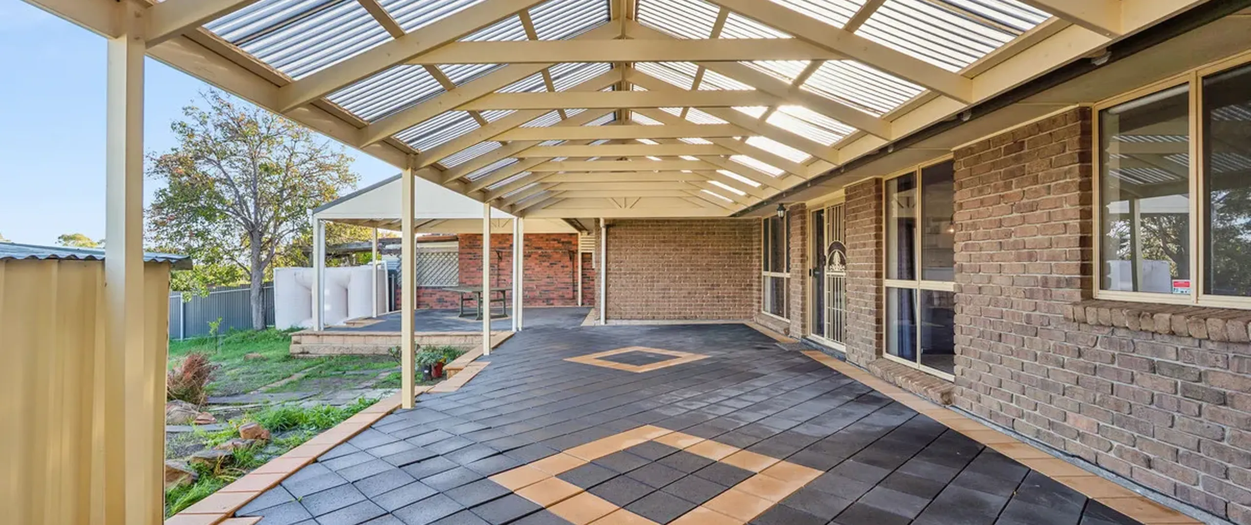 - Expansive outdoor entertaining area with a pitched roof; perfect for hosting friends and family