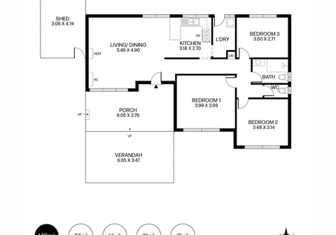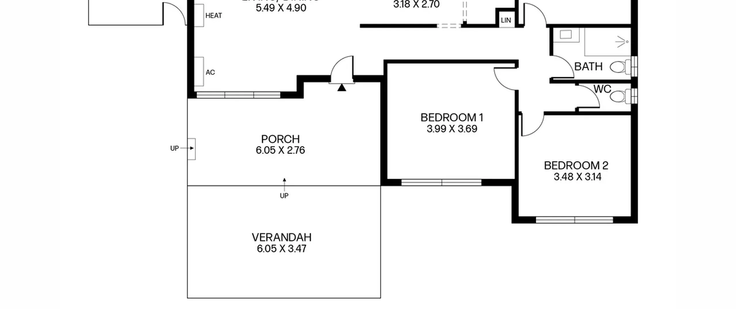 - Split system air conditioner and an additional heater provide year-round comfort in the living and dining area
