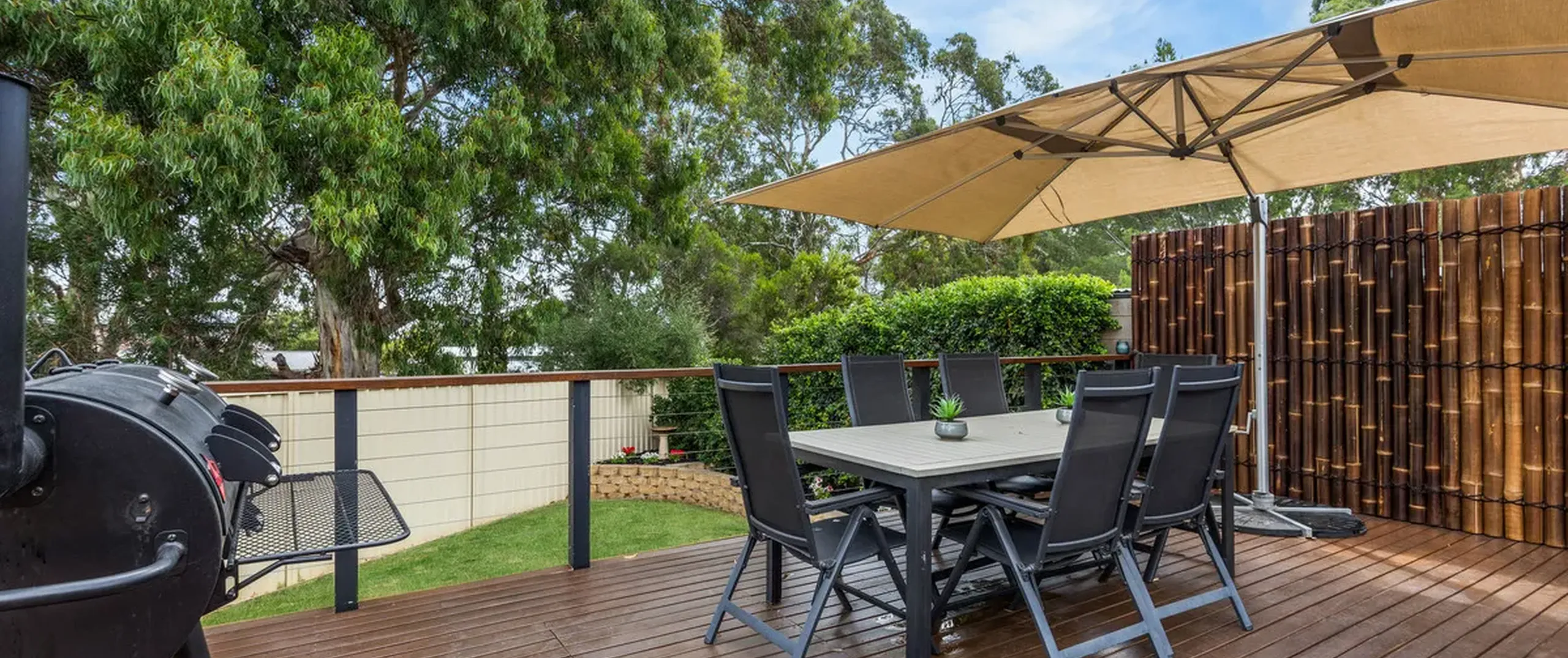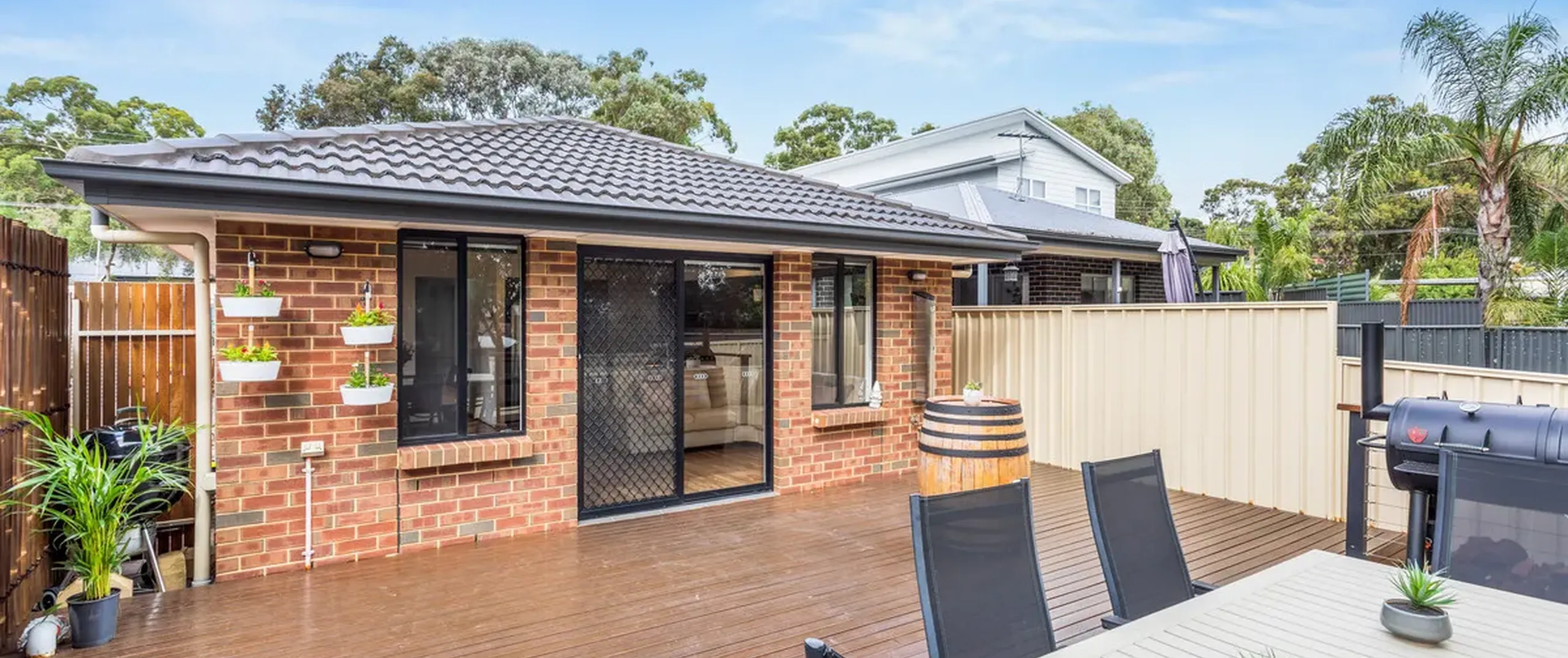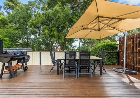 Outside, an impressive decked area overlooks a fenced yard, providing an entertainer’s haven. A double driveway leads to a single garage but with the local supermarket, parks, schools and restaurants all so close, you can leave the car at home and explore the area on foot.