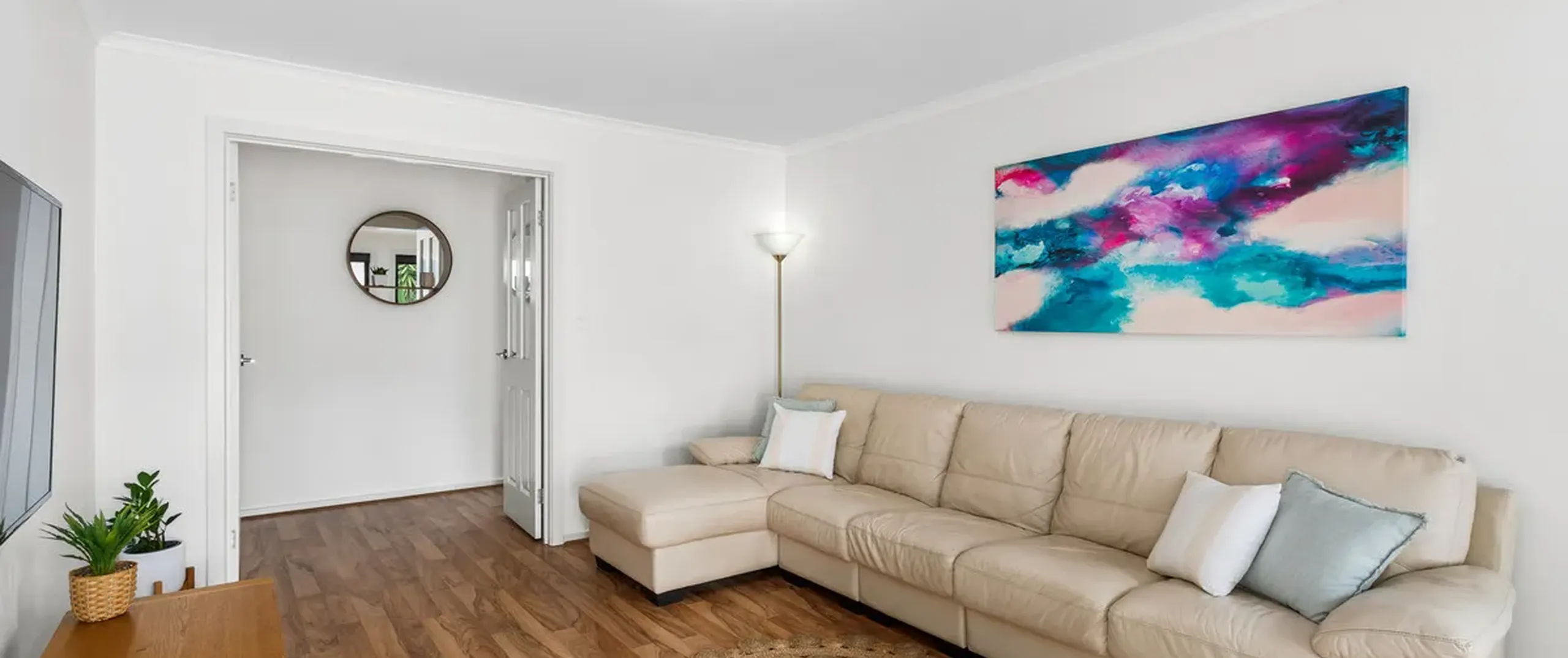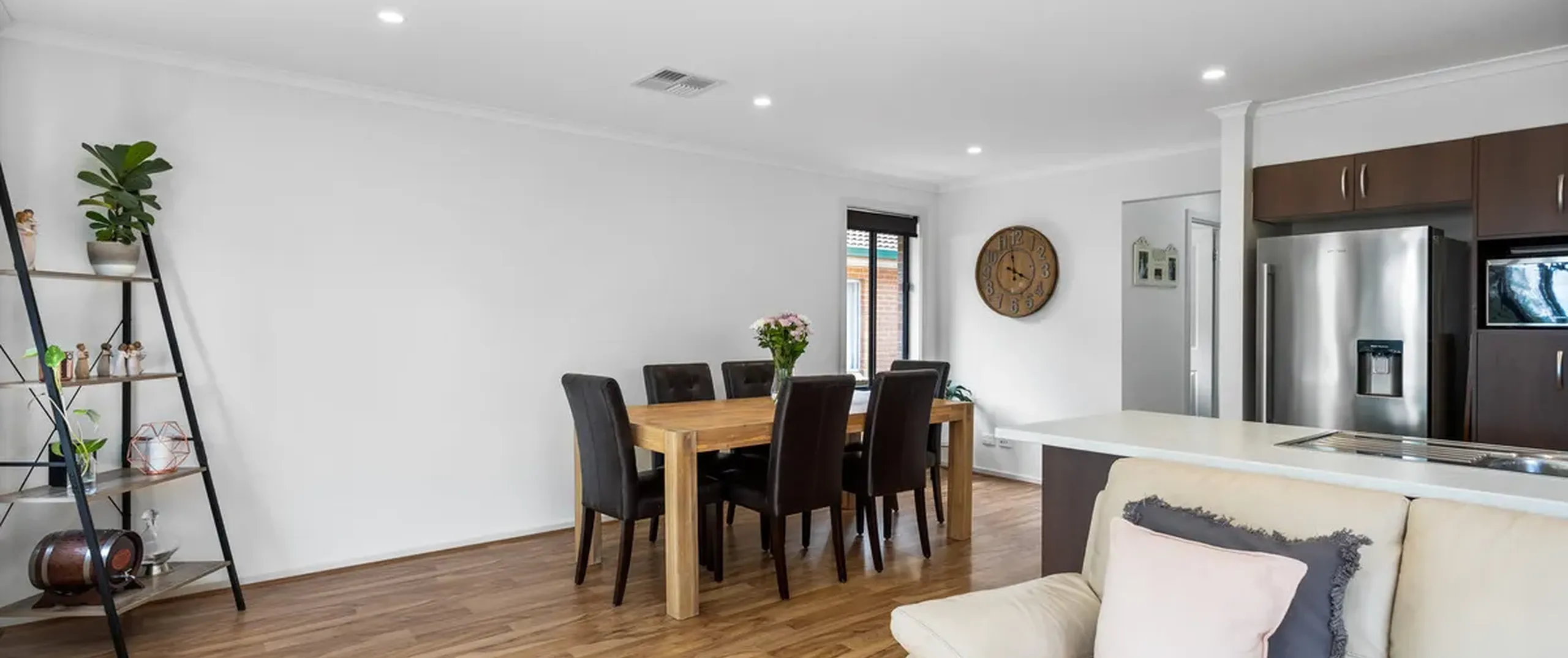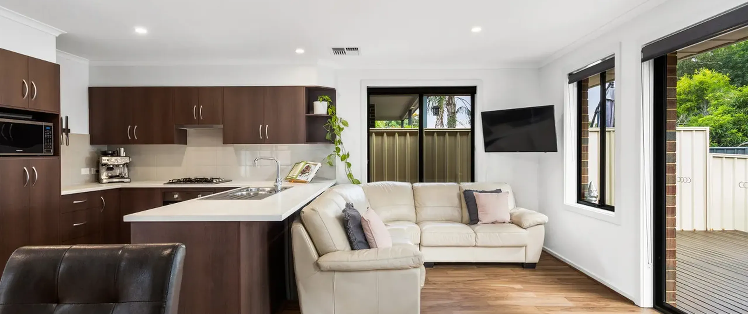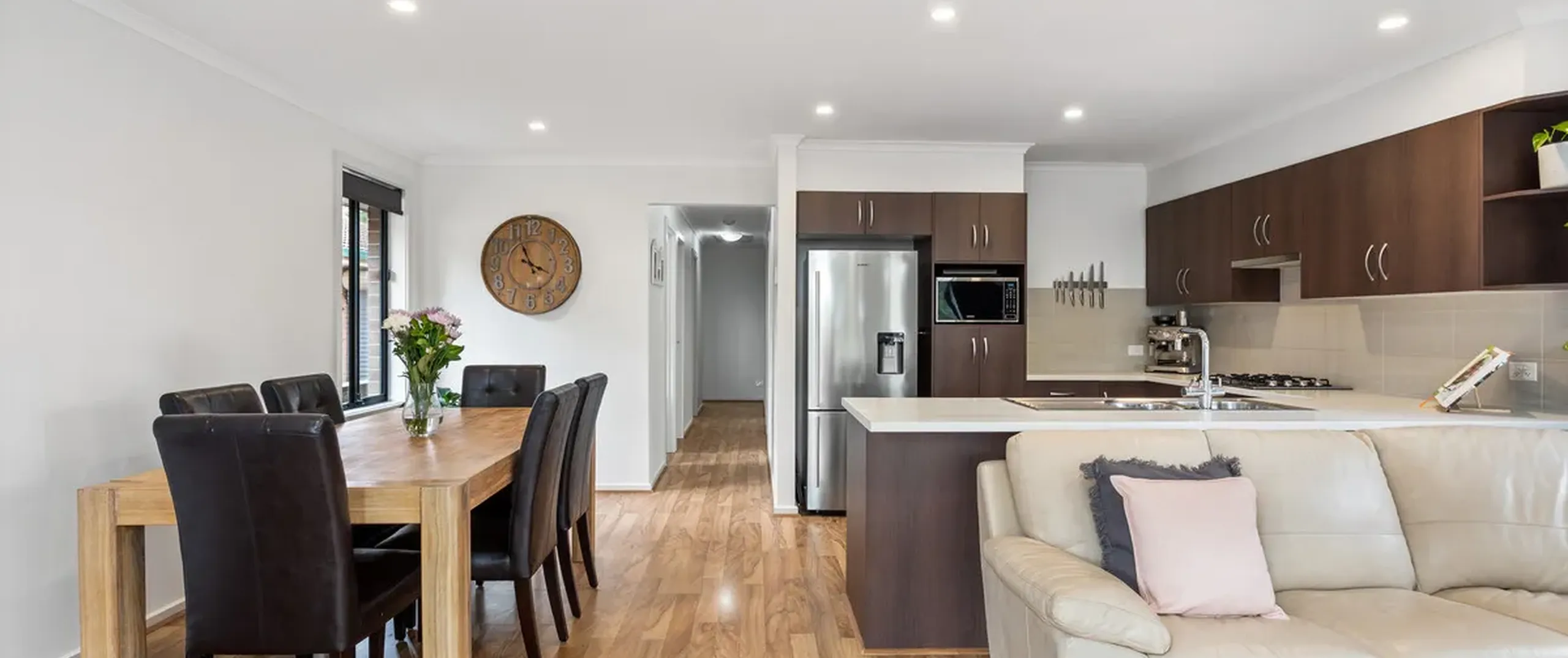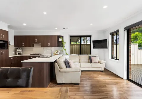 There are three bedrooms and two bathrooms, plus a separate lounge and a light-filled, open-plan living area. For the chef, the kitchen is well-equipped with gas cooking and a dishwasher. Recessed lighting and on-trend flooring add a modern touch.