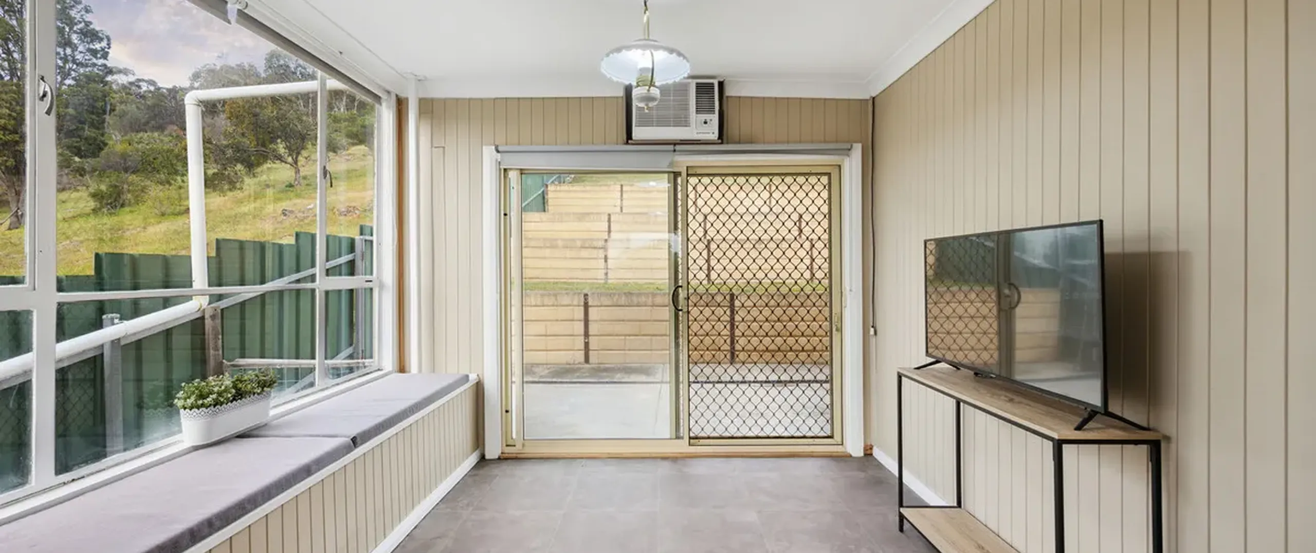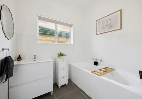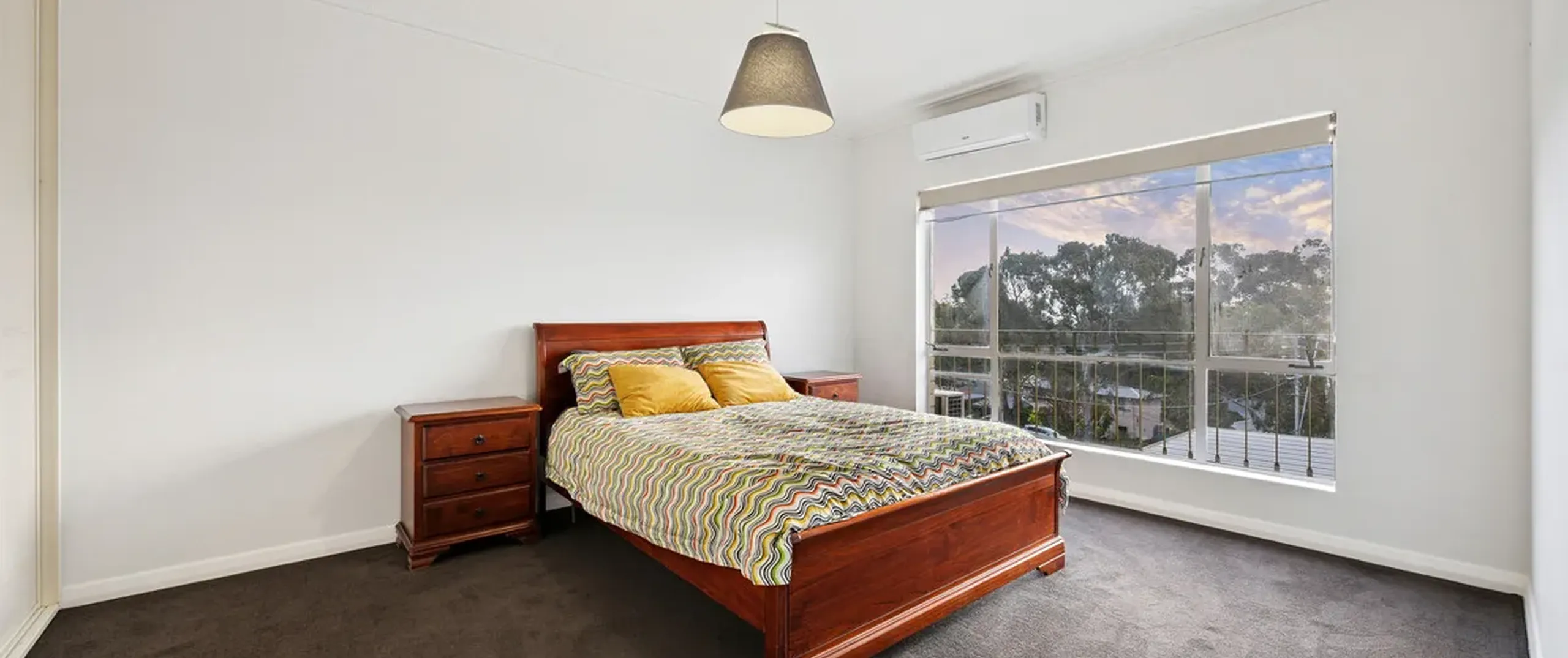 - Main bedroom with built-in robe, split system air-conditioning and views to the hills