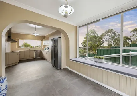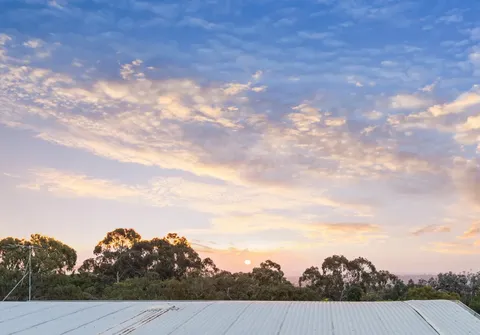 Set across two levels, the home offers multiple zones for relaxing, entertaining and family living. The upper level is the heart of the home, featuring a generous open plan living and dining area that flows onto a wide balcony, the perfect spot to take in the fresh hills air or watch the sun set over the treetops. The well-appointed kitchen offers plenty of bench and storage space, making it both functional and inviting. The meals area feels instantly welcoming, with a bench seat looking out to Anstey Hill Reserve, an ideal place to enjoy breakfast and watch kangaroos in the distance.