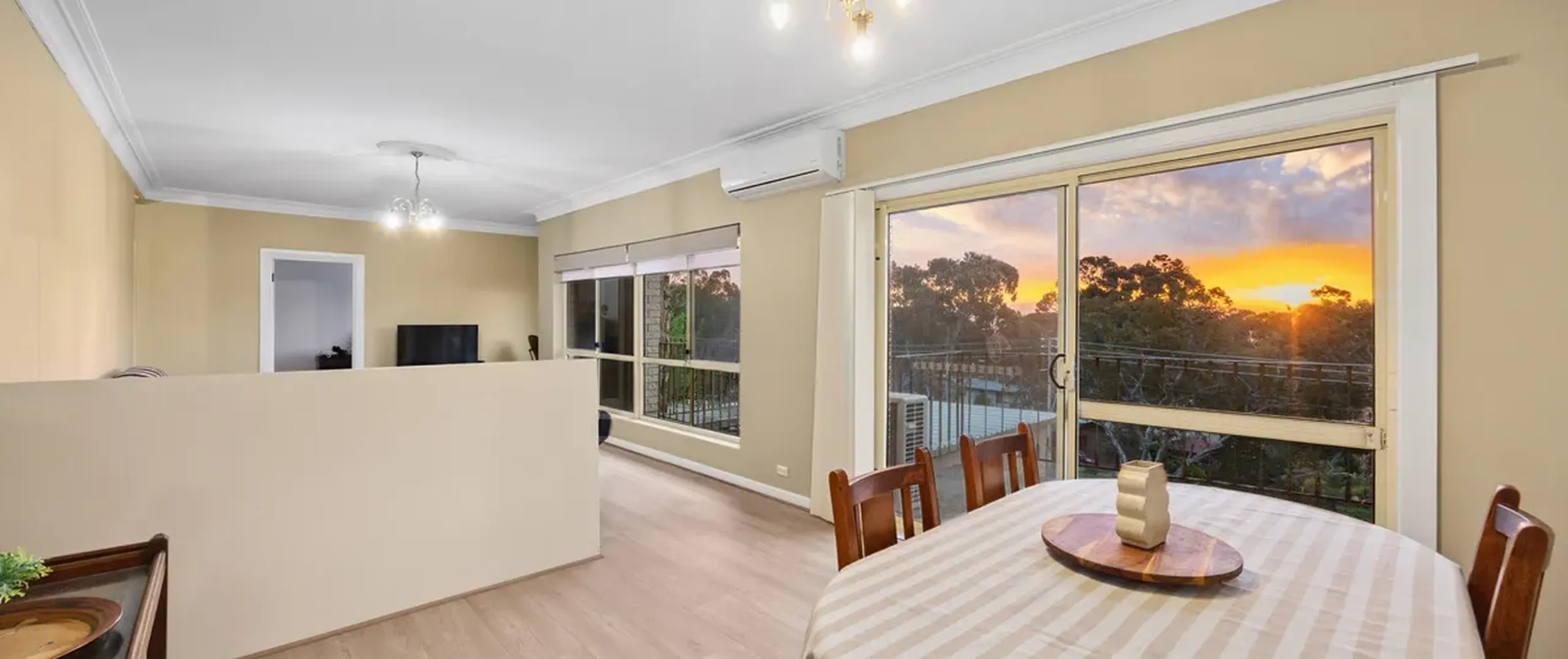 - Spacious open-plan living and dining area with sliding door balcony access