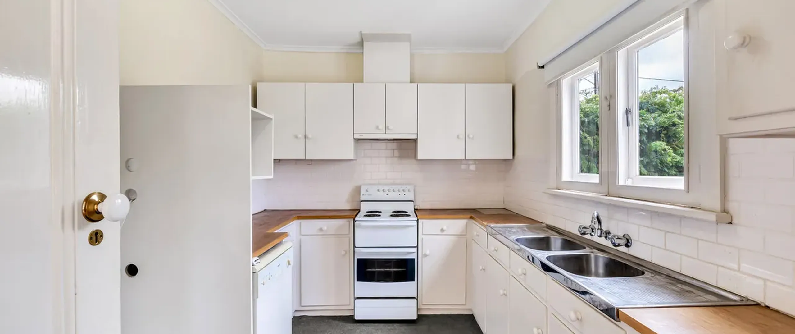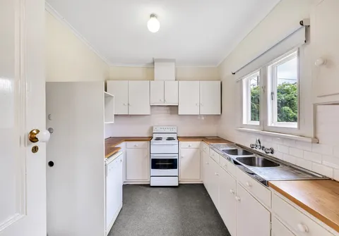 - Practical kitchen with ample bench and cupboard space, plus timber benchtops
