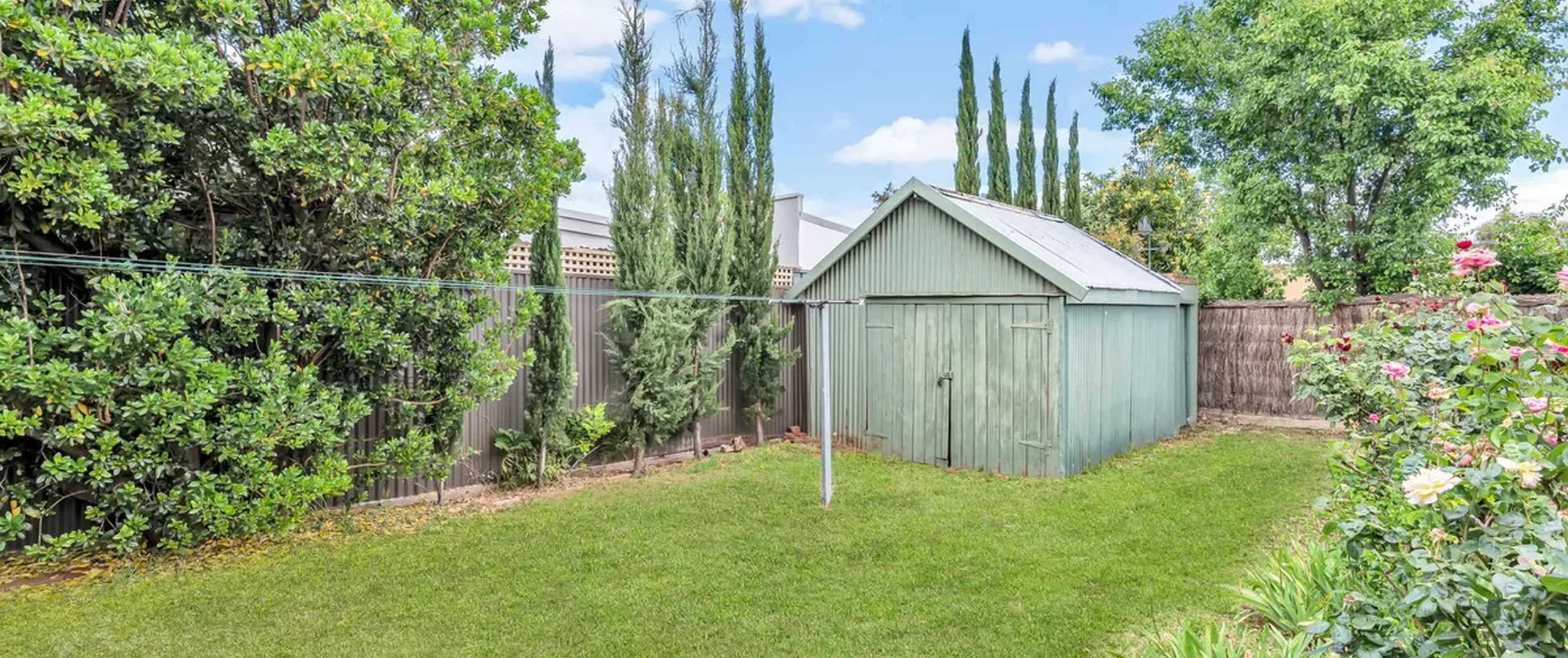 - Secure, fully fenced rear yard with large shed and toilet