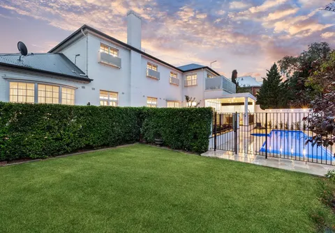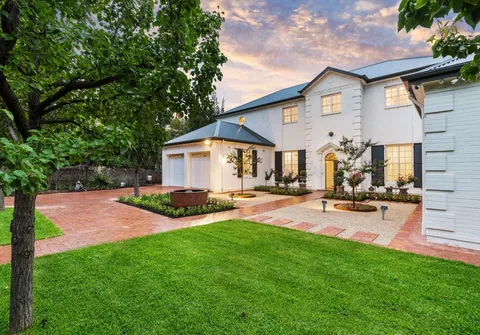 Comprehensively appointed with a state-of-the-art fourteen-camera HD security system with base-to-base monitoring, and two reverse-cycle air conditioning systems servicing individual floors and controlled and monitored remotely via AirTouch. The double garage and large drive together securely accommodate six cars with ease behind a newly installed front electric sliding gate. All gardens have been fully relandscaped and are automatically irrigated.
