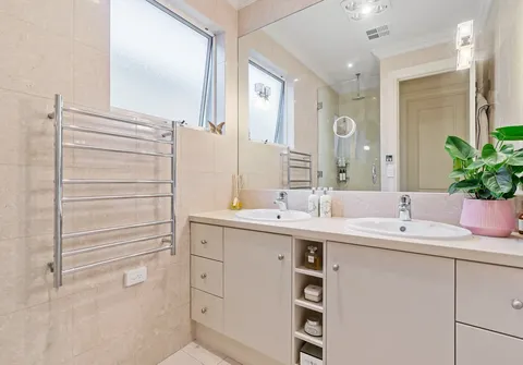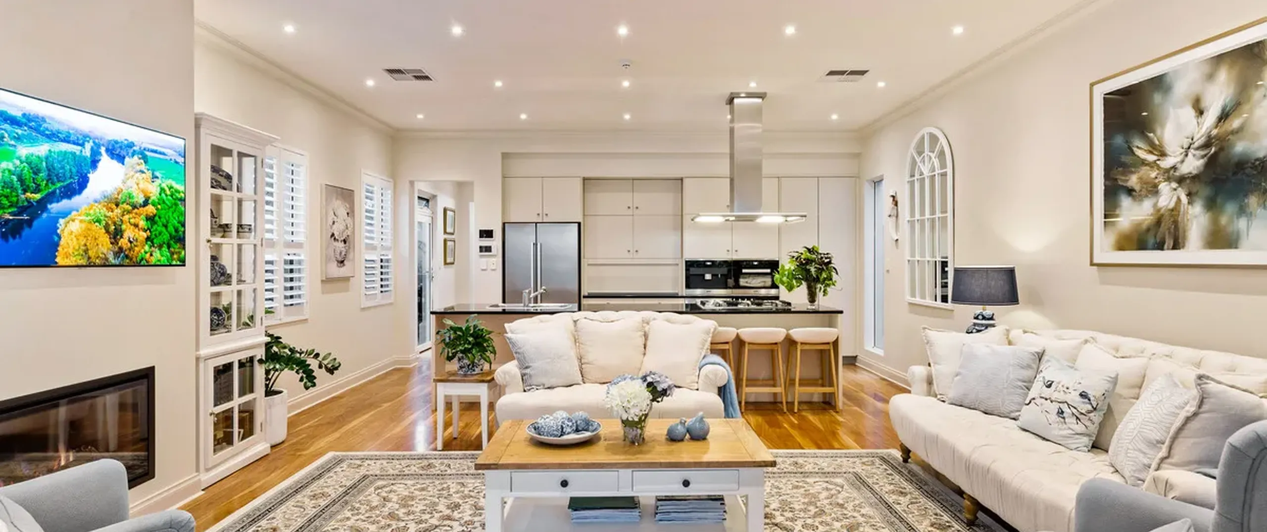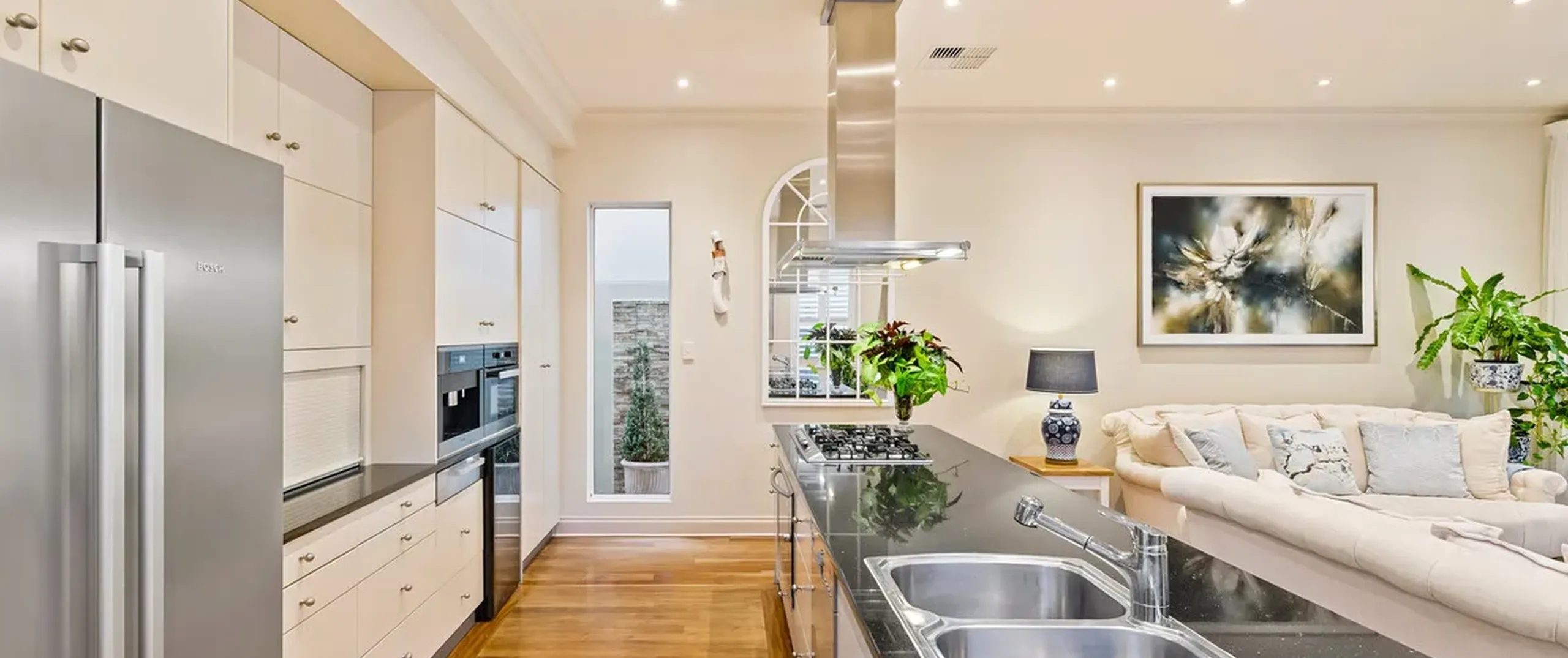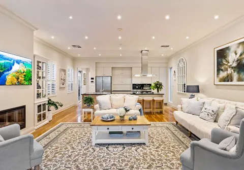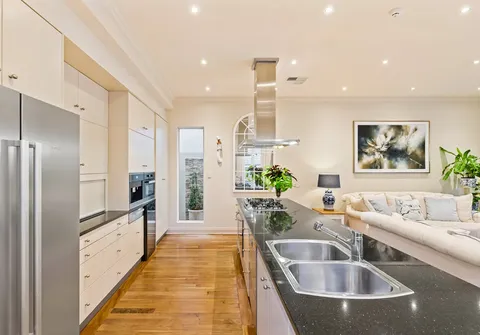 The premium-built three-bedroom, three-bathroom residence spanning two levels is adorned with an array of bespoke features - nothing short of a true Walkerville gem.