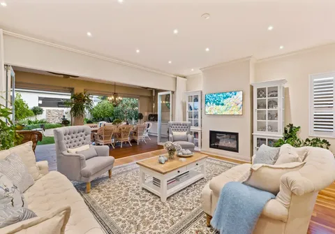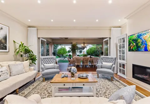 Discover a sophisticated stone-fronted facade paired with topiary hedging paving the way to a grand formal entrance. As the expansive layout unfolds before you, the gracious ambience is set. At centre stage a truly impressive open-plan kitchen and family room awaits, illuminated with LED downlights and warmed by a sumptuous gas fire heater. The timeless kitchen oozes charming character, showcasing granite benchtops and quality Miele appliances sure to impress the avid home chef.