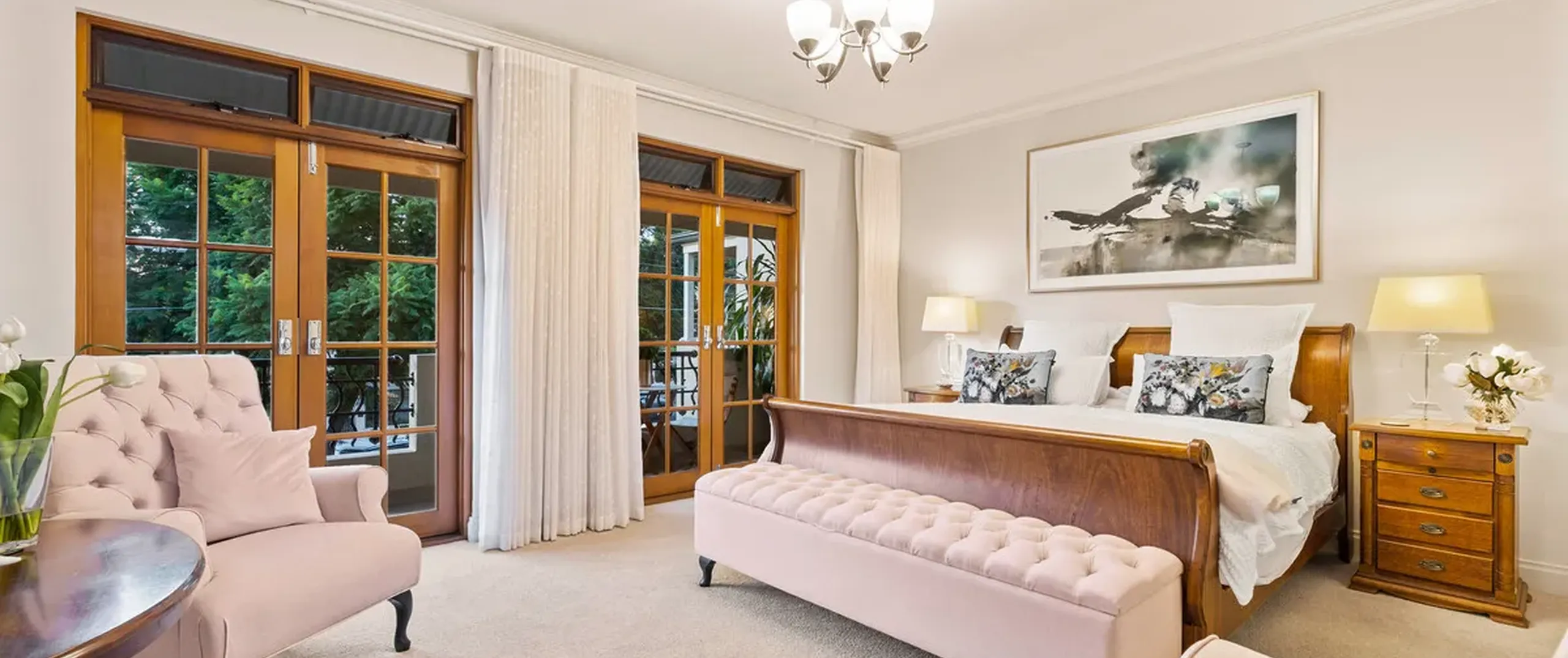 This unique residence comprises an endless list of bespoke features including three metre ceilings, mahogany hardwood flooring, marble tiles to all wet areas and an abundance of natural light through the cedar-framed windows, classic French and bi-fold doors.