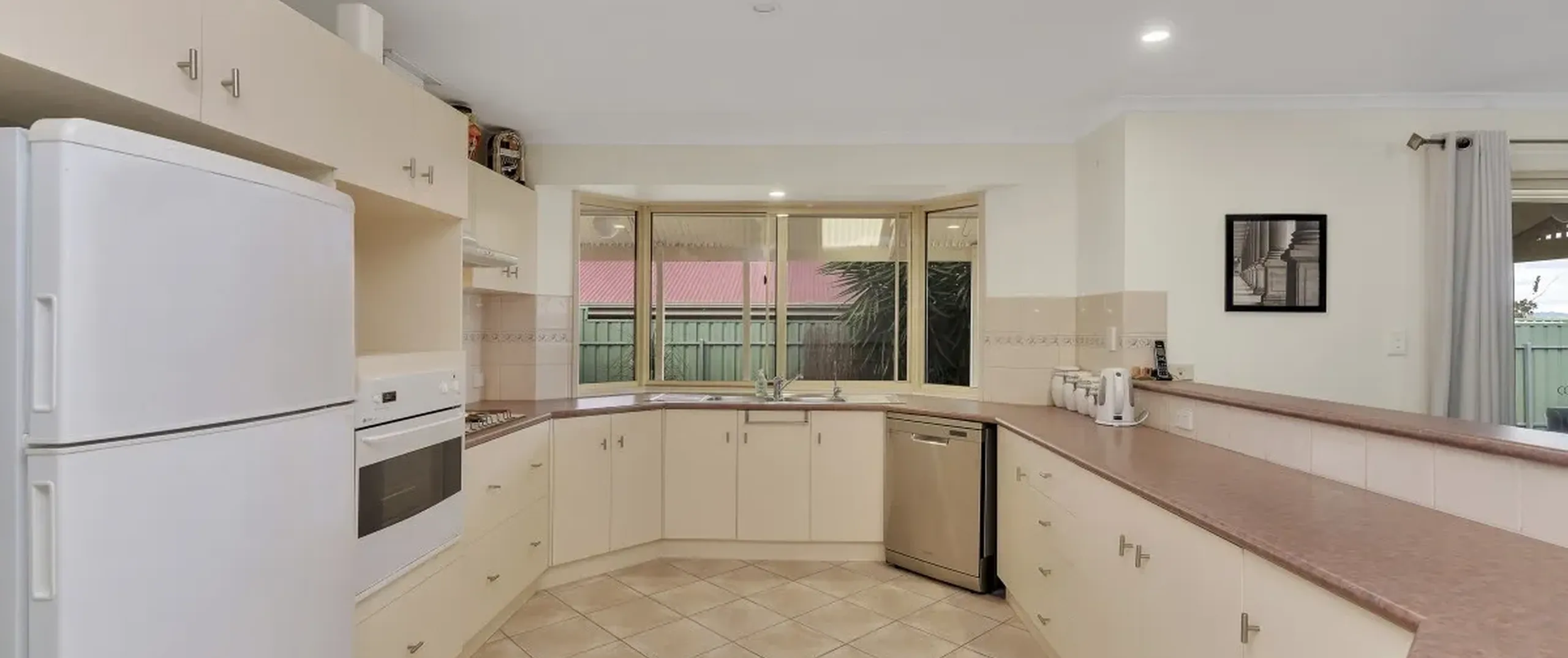 - Large kitchen with ample bench and cupboard space, dishwasher, breakfast bar and walk-in pantry