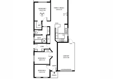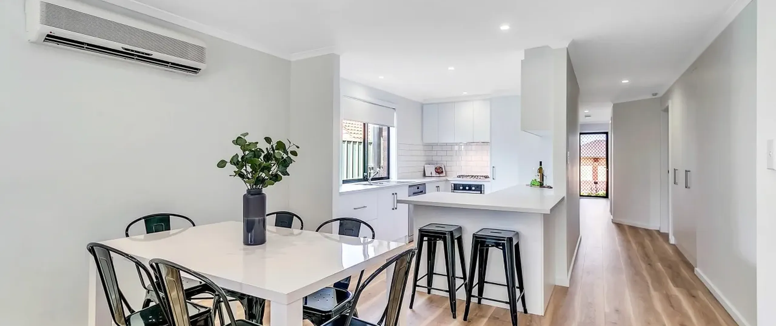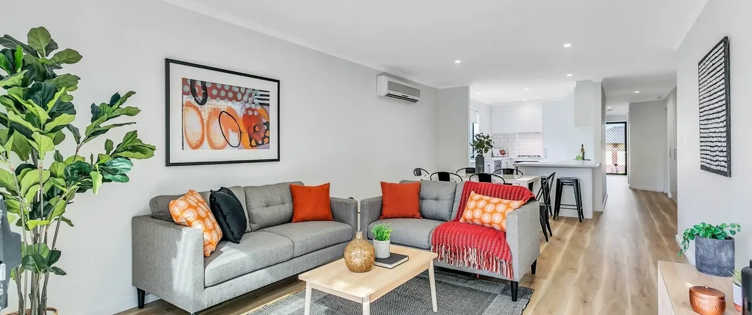 - Open plan family/meals area with split system air conditioner