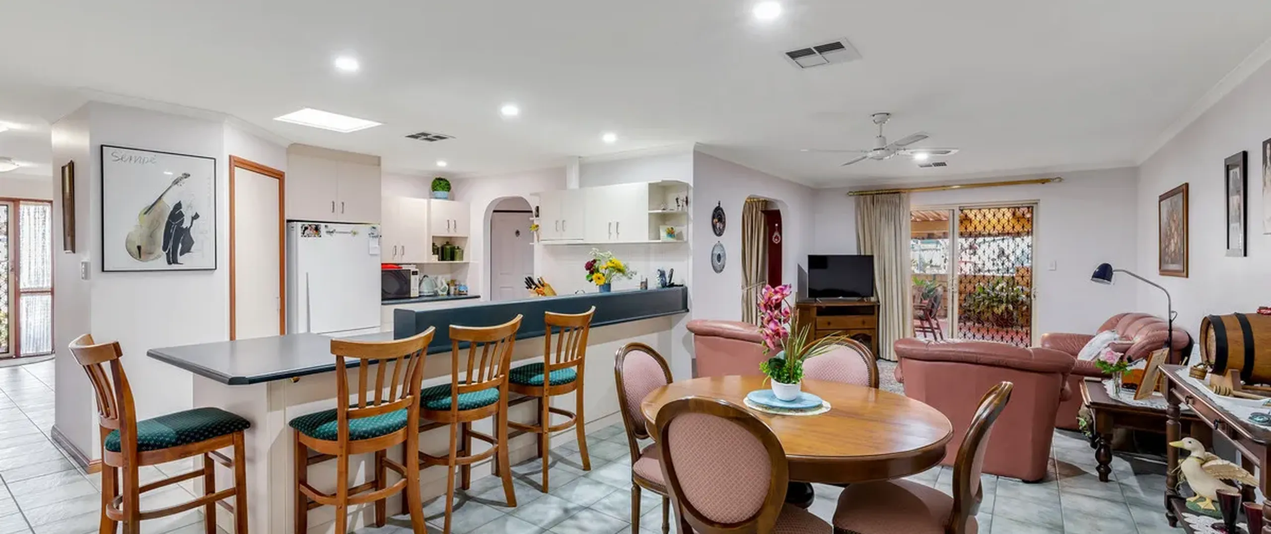 - Spacious family/living/meals area with ceiling fan