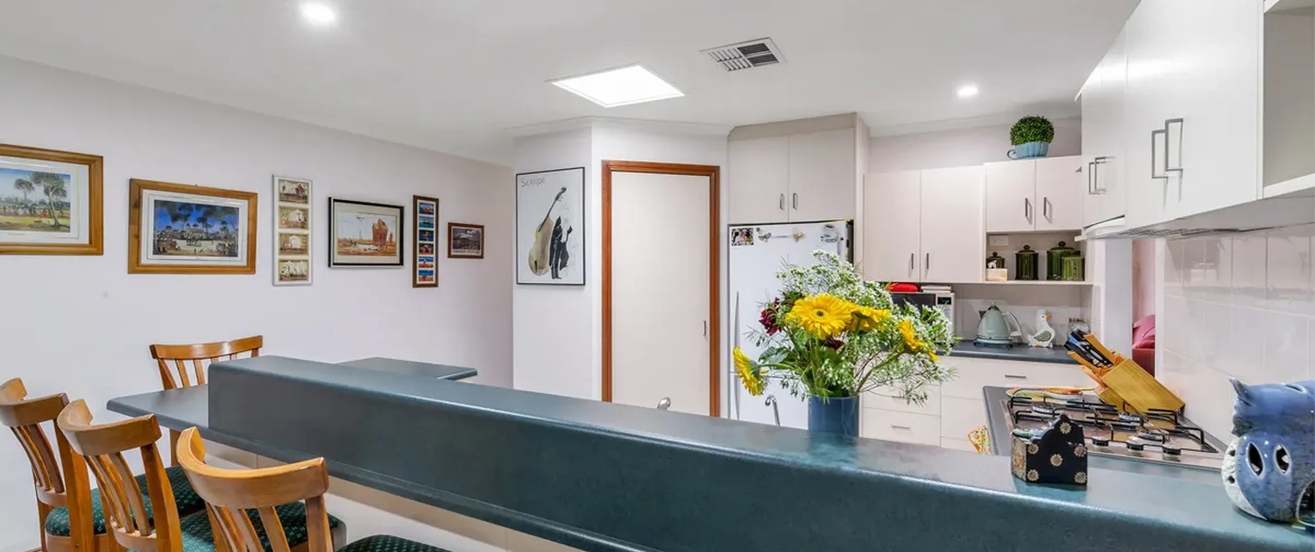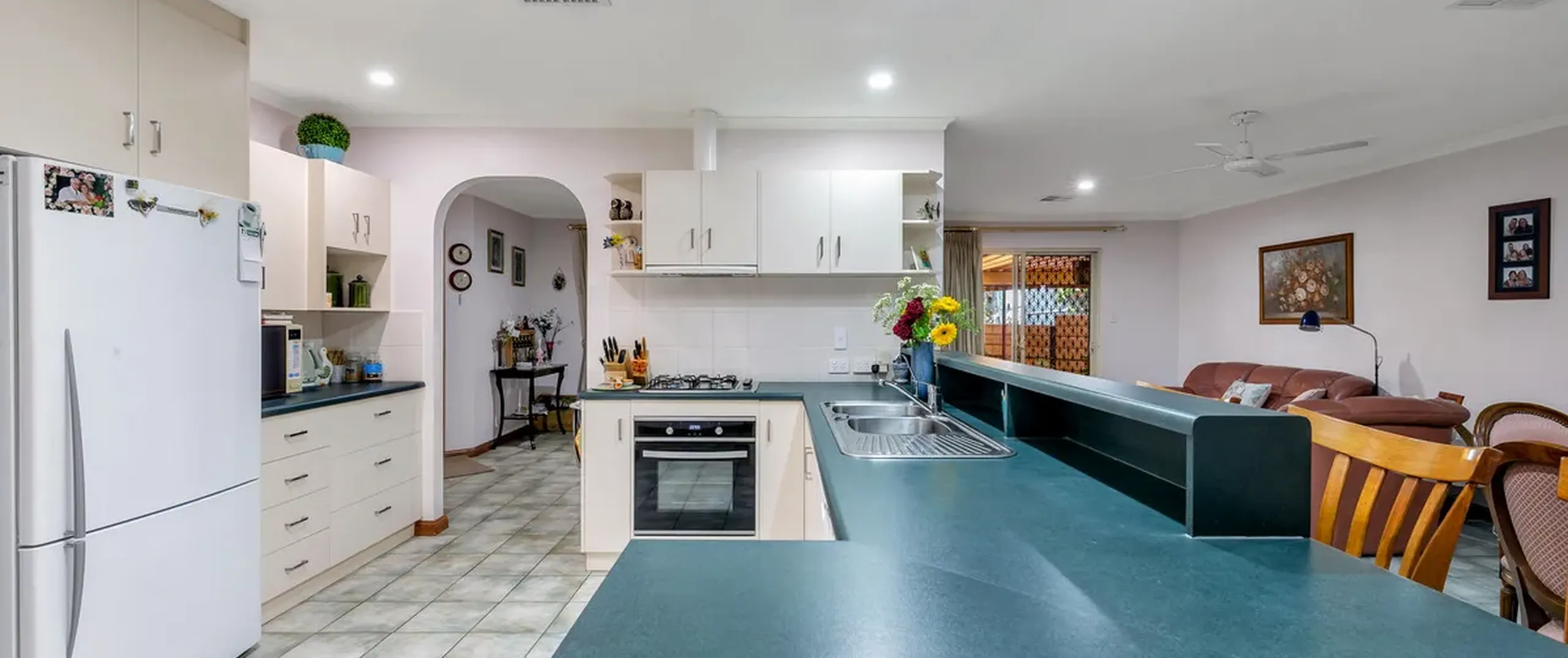- Large kitchen with gas cooktop, dishwasher, ample bench and cupboard space and walk-in pantry