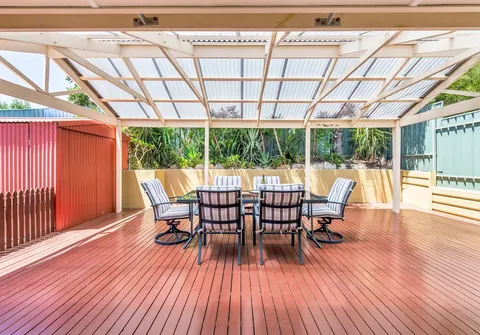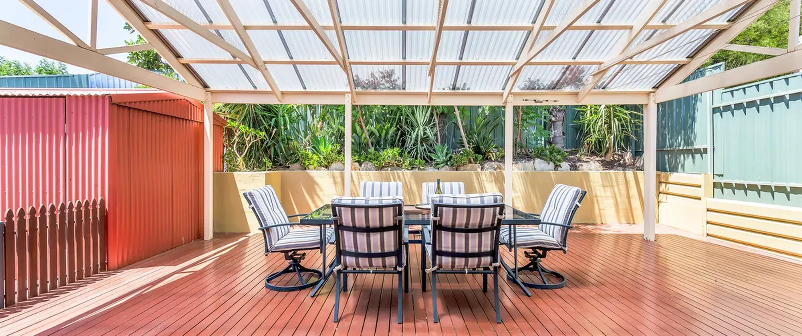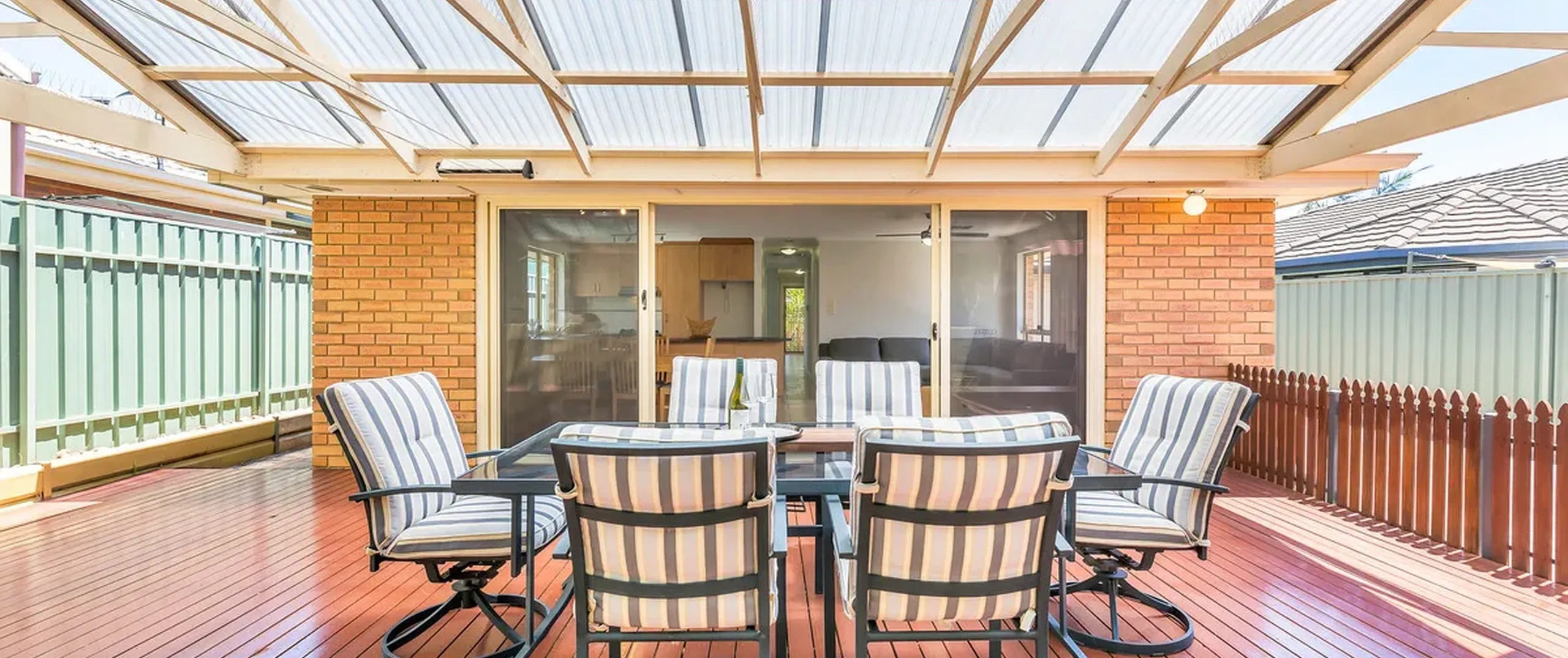 - Decked pergola with gable roof, ideal for outdoor entertaining