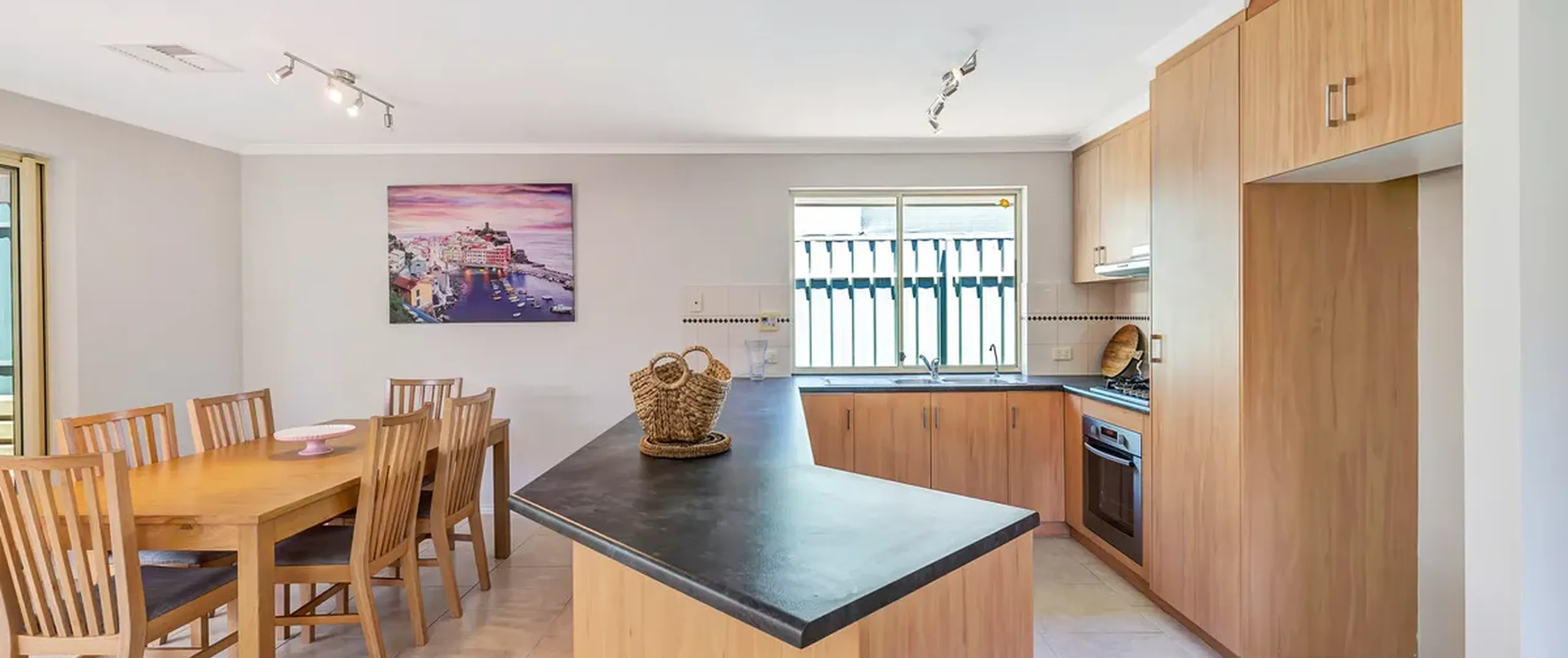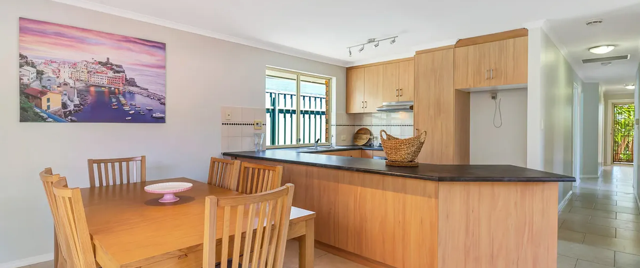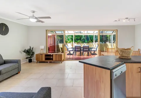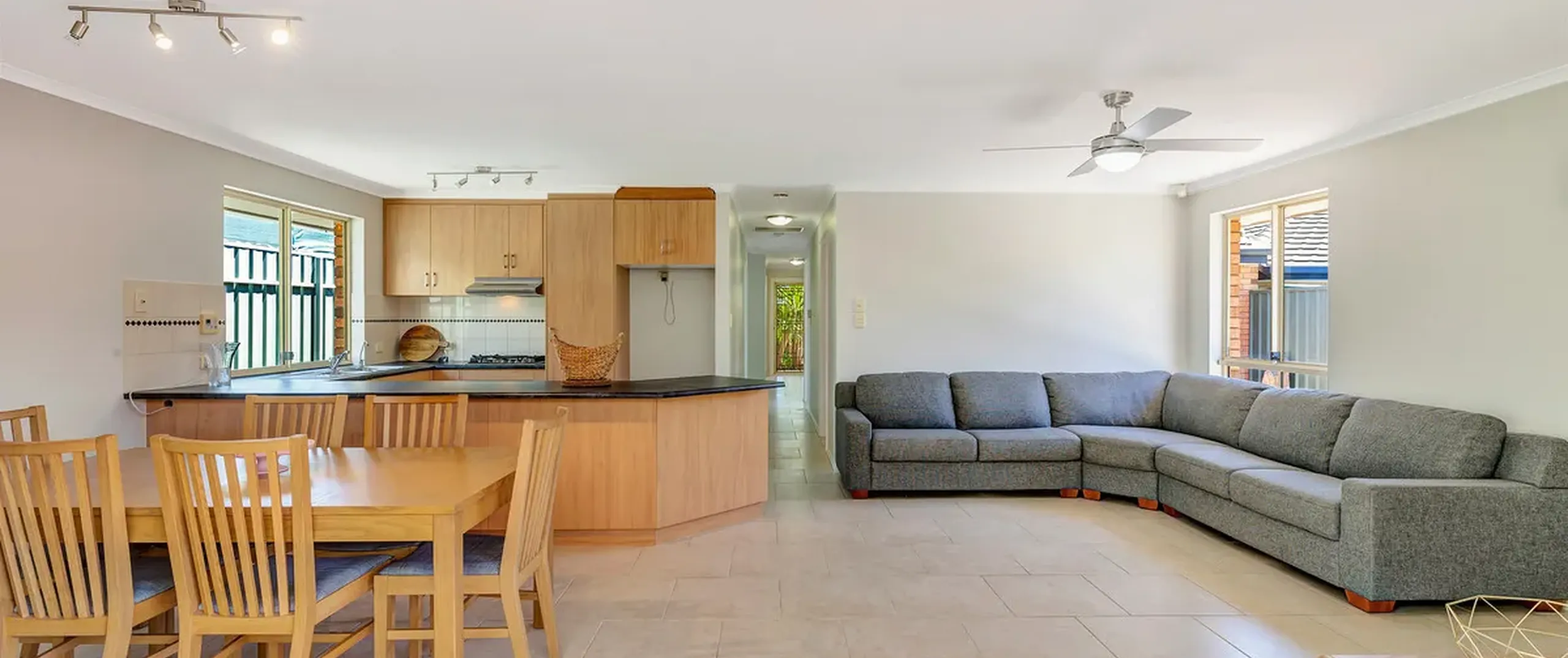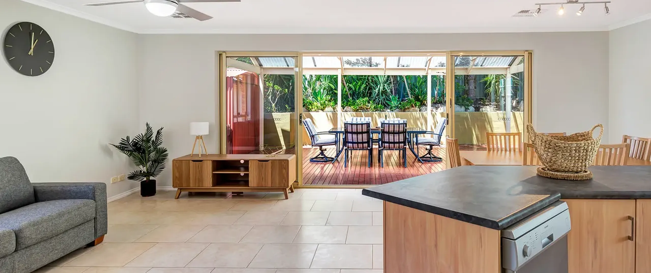 - Spacious open plan family/living/dining with ceiling fan and double sliding doors to outdoor