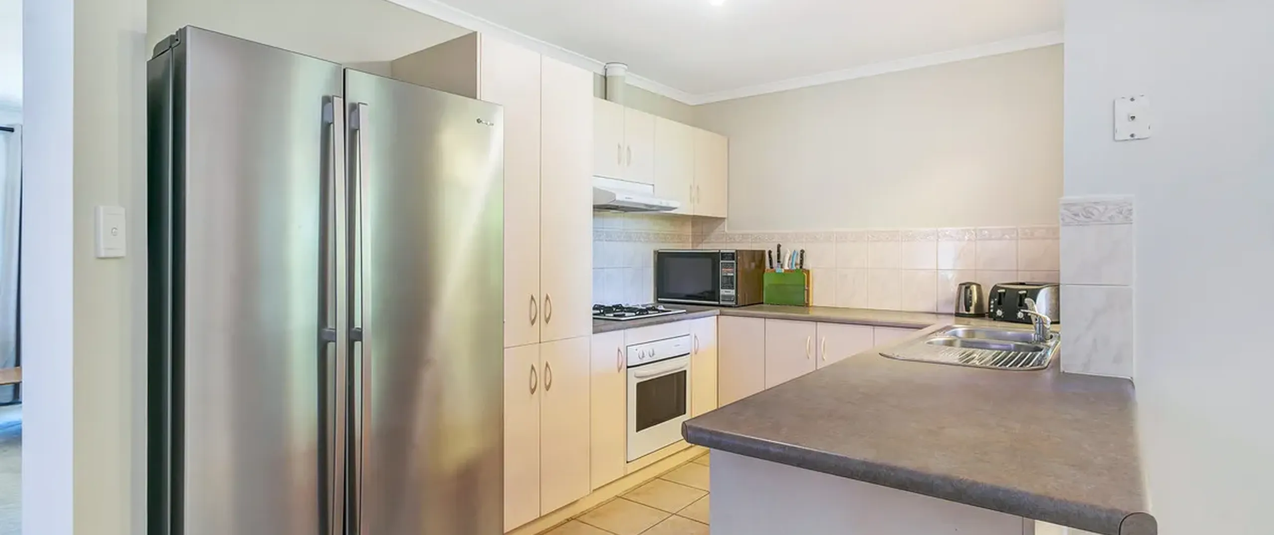 - Kitchen with gas cooktop, breakfast bar and ample bench and cupboard space