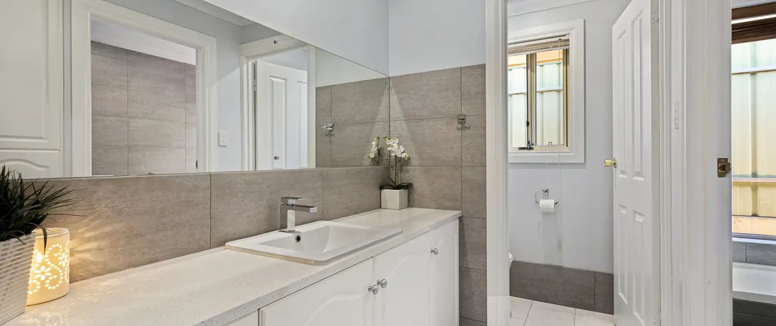 - Master bedroom with ceiling fan, walk-in robe and fully renovated ensuite
